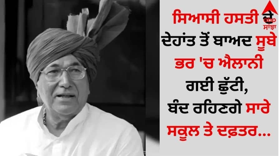 Om Prakash Chautala: ਇੰਡੀਅਨ ਨੈਸ਼ਨਲ ਲੋਕ ਦਲ (ਇਨੈਲੋ) ਦੇ ਪ੍ਰਧਾਨ ਅਤੇ ਹਰਿਆਣਾ ਦੇ ਸਾਬਕਾ ਮੁੱਖ ਮੰਤਰੀ ਓਮ ਪ੍ਰਕਾਸ਼ ਚੌਟਾਲਾ (89) ਦਾ ਸ਼ੁੱਕਰਵਾਰ ਨੂੰ ਗੁਰੂਗ੍ਰਾਮ ਵਿੱਚ ਦੇਹਾਂਤ ਹੋ ਗਿਆ। ਹਰਿਆਣਾ ਸਰਕਾਰ ਨੇ ਸਾਬਕਾ ਮੁੱਖ ਮੰਤਰੀ ਦੇ ਸਨਮਾਨ ਵਿੱਚ ਸ਼ਨੀਵਾਰ ਨੂੰ ਤਿੰਨ ਦਿਨ ਦੇ ਰਾਜਕੀ ਸੋਗ ਅਤੇ ਸਾਰੇ ਸਕੂਲਾਂ ਅਤੇ ਸਰਕਾਰੀ ਦਫਤਰਾਂ ਵਿੱਚ ਜਨਤਕ ਛੁੱਟੀ ਦਾ ਐਲਾਨ ਕੀਤਾ ਹੈ।