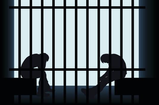 illustration of two silhouettes sitting in the jail