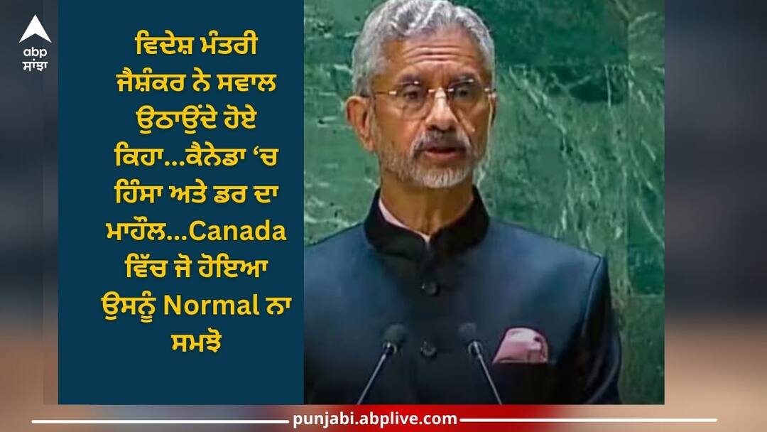 India-Canada Row: ਵਿਦੇਸ਼ ਮੰਤਰੀ ਐਸ ਜੈਸ਼ੰਕਰ ਨੇ ਇੱਕ ਵਾਰ ਫਿਰ ਕੈਨੇਡਾ ਨੂੰ ਕਰਾਰਾ ਜਵਾਬ ਦਿੱਤਾ ਹੈ। ਜੈਸ਼ੰਕਰ ਨੇ ਕਿਹਾ ਕਿ ਕੈਨੇਡਾ 'ਚ ਜੋ ਵੀ ਹੋ ਰਿਹਾ ਹੈ, ਉਸ ਨੂੰ ਆਮ ਨਾ ਬਣਾਓ। ਉਨ੍ਹਾਂ ਸਵਾਲ ਕੀਤਾ ਕਿ ਕੈਨੇਡਾ ਵਿੱਚ ਜੋ ਕੁਝ ਹੋ ਰਿਹਾ ਹੈ, ਜੇਕਰ ਇਹ ਕਿਤੇ ਹੋਰ ਵਾਪਰਿਆ ਹੁੰਦਾ ਤਾਂ ਕੀ ਦੁਨੀਆ ਇਸ ਨੂੰ ਸਵੀਕਾਰ ਕਰਦੀ? ਐਸ ਜੈਸ਼ੰਕਰ ਨੇ ਅੱਗੇ ਕਿਹਾ ਕਿ ਕੈਨੇਡਾ ਇੱਕ ਅਜਿਹਾ ਦੇਸ਼ ਬਣ ਗਿਆ ਹੈ ਜਿੱਥੇ ਭਾਰਤ ਤੋਂ ਸੰਗਠਿਤ ਅਪਰਾਧ, ਲੋਕਾਂ ਦੀ ਤਸਕਰੀ, ਵੱਖਵਾਦ ਅਤੇ ਹਿੰਸਾ ਦਾ ਸੁਮੇਲ ਹੈ।