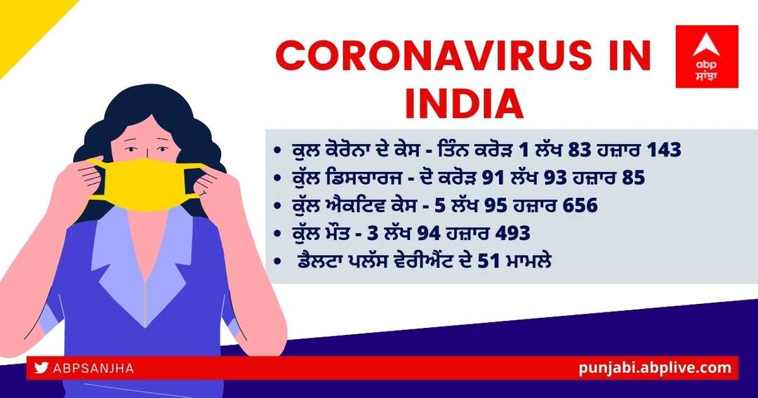 ਕੁਲ ਕੋਰੋਨਾ ਦੇ ਕੇਸ - ਤਿੰਨ ਕਰੋੜ 1 ਲੱਖ 83 ਹਜ਼ਾਰ 143