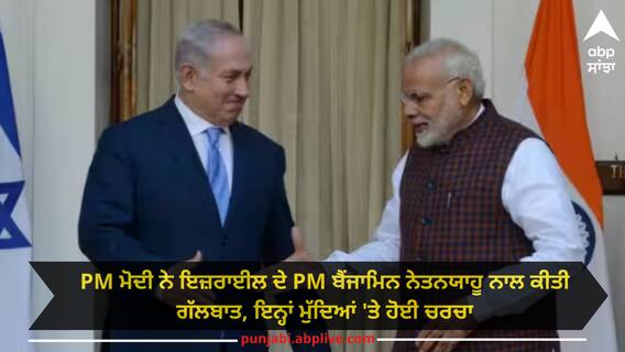 PM Modi-Benjamin Netanyahu Talks: ਪ੍ਰਧਾਨ ਮੰਤਰੀ ਨਰਿੰਦਰ ਮੋਦੀ ਨੇ ਮੰਗਲਵਾਰ (19 ਦਸੰਬਰ) ਨੂੰ ਇਜ਼ਰਾਈਲ ਦੇ ਪ੍ਰਧਾਨ ਮੰਤਰੀ ਬੈਂਜਾਮਿਨ ਨੇਤਨਯਾਹੂ ਨਾਲ ਫ਼ੋਨ 'ਤੇ ਗੱਲ ਕੀਤੀ। ਇਸ ਦੌਰਾਨ ਪੀਐਮ ਮੋਦੀ ਨੇ ਨੇਤਨਯਾਹੂ ਨੂੰ ਮਨੁੱਖੀ ਸਹਾਇਤਾ ਅਤੇ ਇਜ਼ਰਾਈਲ-ਹਮਾਸ ਸੰਘਰਸ਼ ਨੂੰ ਗੱਲਬਾਤ ਅਤੇ ਕੂਟਨੀਤੀ ਰਾਹੀਂ ਹੱਲ ਕਰਨ ਦੀ ਜ਼ਰੂਰਤ ਨੂੰ ਦੁਹਰਾਇਆ।