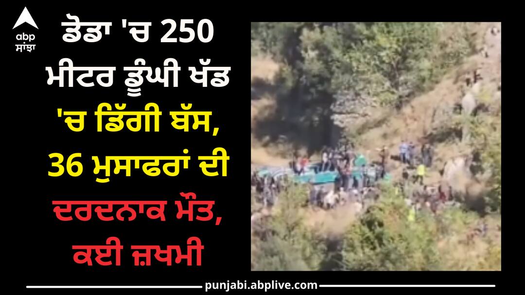 Doda Road Accident: ਜੰਮੂ-ਕਸ਼ਮੀਰ 'ਚ ਇਕ ਦਰਦਨਾਕ ਹਾਦਸਾ ਵਾਪਰਿਆ ਹੈ, ਜਿੱਥੇ ਕਿਸ਼ਤਵਾੜ ਤੋਂ ਜੰਮੂ ਜਾ ਰਹੀ ਇਕ ਬੱਸ ਡੋਡਾ ਜ਼ਿਲ੍ਹੇ ਦੇ ਆਸਰ ਇਲਾਕੇ 'ਚ ਟ੍ਰੁੰਗਲ ਨੇੜੇ ਸੜਕ ਤੋਂ 250 ਮੀਟਰ ਹੇਠਾਂ ਜਾ ਡਿੱਗੀ। ਇਸ ਬੱਸ ਵਿੱਚ ਕੁੱਲ 40 ਲੋਕ ਸਵਾਰ ਸਨ ਅਤੇ ਇਹ ਖ਼ਬਰ ਲਿਖੇ ਜਾਣ ਤੱਕ 36 ਲੋਕਾਂ ਦੀ ਮੌਤ ਹੋ ਜਾਣ ਦੀ ਦੁਖਦਾਈ ਸੂਚਨਾ ਮਿਲੀ ਹੈ। ਸੂਚਨਾ ਮਿਲਣ 'ਤੇ ਪੁਲਿਸ ਮੌਕੇ 'ਤੇ ਪਹੁੰਚੀ ਅਤੇ ਰਾਹਤ ਕਾਰਜ ਚਲਾ ਰਹੀ ਹੈ।