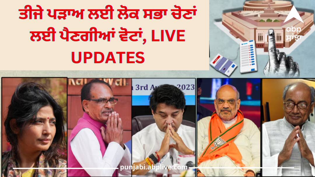 ਤੀਜੇ ਪੜਾਅ ਲਈ ਵੋਟਿੰਗ ਸ਼ੁਰੂ ਤੀਜੇ ਪੜਾਅ ਲਈ ਵੋਟਿੰਗ ਸ਼ੁਰੂ ਹੋ ਗਈ ਹੈ। ਇਸ ਪੜਾਅ 'ਚ 11 ਸੂਬਿਆਂ ਅਤੇ ਇਕ ਕੇਂਦਰ ਸ਼ਾਸਿਤ ਪ੍ਰਦੇਸ਼ ਦੀਆਂ 93 ਸੀਟਾਂ 'ਤੇ ਵੋਟਿੰਗ ਹੋ ਰਹੀ ਹੈ।