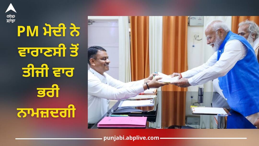 PM Modi Filed Nomination: ਪ੍ਰਧਾਨ ਮੰਤਰੀ ਨਰਿੰਦਰ ਮੋਦੀ (Prime Minister Narendra Modi) ਨੇ ਉੱਤਰ ਪ੍ਰਦੇਸ਼ ਦੀ ਵਾਰਾਣਸੀ ਲੋਕ ਸਭਾ ਸੀਟ ਤੋਂ ਅੱਜ ਯਾਨੀਕਿ 14 ਮਈ ਨੂੰ ਤੀਜੀ ਵਾਰ ਨਾਮਜ਼ਦਗੀ ਪੱਤਰ ਦਾਖਲ ਕੀਤਾ ਹੈ। ਜ਼ਿਲ੍ਹਾ ਮੈਜਿਸਟਰੇਟ ਦੇ ਸਾਹਮਣੇ ਨਾਮਜ਼ਦਗੀ ਦਾਖਲ (Filed Nomination) ਕਰਨ ਸਮੇਂ ਉਨ੍ਹਾਂ ਨਾਲ ਯੂਪੀ ਦੇ ਮੁੱਖ ਮੰਤਰੀ ਯੋਗੀ ਆਦਿਤਿਆਨਾਥ ਅਤੇ ਪ੍ਰਸਤਾਵਕ ਗਣੇਸ਼ਵਰ ਸ਼ਾਸਤਰੀ ਦ੍ਰਾਵਿੜ ਮੌਜੂਦ ਸਨ।
