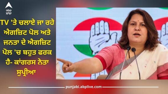 Lok Sabha Election Exit Poll 2024: ਕਾਂਗਰਸ ਨੇ ਲੋਕ ਸਭਾ ਚੋਣਾਂ ਨੂੰ ਲੈ ਕੇ ਐਗਜ਼ਿਟ ਪੋਲ 'ਤੇ ਪ੍ਰਤੀਕਿਰਿਆ ਦਿੰਦੇ ਹੋਏ ਕਿਹਾ ਕਿ ਇਹ ਸਹੀ ਨਹੀਂ ਹੈ। ਪਾਰਟੀ ਆਗੂ ਸੁਪ੍ਰੀਆ ਸ਼੍ਰੀਨੇਤ ਨੇ ਕਿਹਾ ਕਿ ਇਹ ਐਗਜ਼ਿਟ ਪੋਲ ਪ੍ਰਧਾਨ ਮੰਤਰੀ ਨਰਿੰਦਰ ਮੋਦੀ ਦੇ ਹਨ, ਜਨਤਾ ਦੇ ਨਹੀਂ।