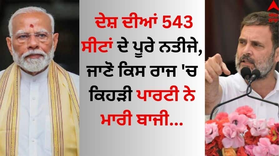 ਉੱਤਰ ਪ੍ਰਦੇਸ਼, ਰਾਜਸਥਾਨ, ਮਹਾਰਾਸ਼ਟਰ, ਬੰਗਾਲ, ਕਰਨਾਟਕ, ਹਰਿਆਣਾ ਵਿੱਚ ਭਾਜਪਾ ਅੱਧੇ ਤੋਂ ਵੀ ਘੱਟ ਰਹਿ ਗਈ। ਪੰਜਾਬ ਤੇ ਤਾਮਿਲਨਾਡੂ ਵਿੱਚ ਖਾਤਾ ਵੀ ਨਹੀਂ ਖੁੱਲ੍ਹਿਆ। ਇਸ ਲਈ ਨਿਤੀਸ਼ ਕੁਮਾਰ ਤੇ ਚੰਦਰਬਾਬੂ ਨਾਇਡੂ ਨਵੀਂ ਐਨਡੀਏ ਗੱਠਜੋੜ ਸਰਕਾਰ ਦੇ ਕਿੰਗਮੇਕਰ ਵਜੋਂ ਉਭਰੇ ਹਨ। ਆਓ ਜਾਣਦੇ ਹਾਂ ਕਿ ਦੇਸ਼ ਦੇ ਸਾਰੇ 28 ਰਾਜਾਂ ਤੇ 8 ਕੇਂਦਰ ਸ਼ਾਸਤ ਪ੍ਰਦੇਸ਼ਾਂ ਵਿੱਚ ਚੋਣ ਨਤੀਜੇ ਕਿਵੇਂ ਰਹੇ।