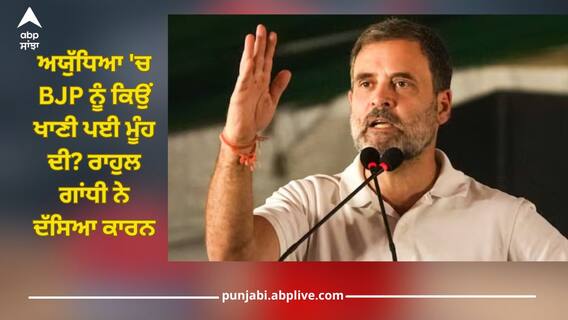 Lok Sabha Elections Result 2024: ਲੋਕ ਸਭਾ ਚੋਣਾਂ 2024 ਦੇ ਨਤੀਜਿਆਂ ਨੇ ਭਾਜਪਾ ਨੂੰ ਵੱਡਾ ਝਟਕਾ ਦਿੱਤਾ ਹੈ, ਕਿਉਂਕਿ ਭਾਜਪਾ 400 ਸੀਟਾਂ ਜਿੱਤਣ ਦਾ ਦਾਅਵਾ ਕਰ ਰਹੀ ਸੀ, ਪਰ ਜਦੋਂ ਨਤੀਜੇ ਆਏ ਤਾਂ ਭਾਜਪਾ ਸਿਰਫ਼ 240 ਸੀਟਾਂ ਹੀ ਜਿੱਤ ਸਕੀ। ਭਾਜਪਾ ਨੂੰ ਅਯੁੱਧਿਆ 'ਚ ਸਭ ਤੋਂ ਵੱਡਾ ਝਟਕਾ ਲੱਗਾ ਹੈ। ਫੈਜ਼ਾਬਾਦ ਲੋਕ ਸਭਾ ਸੀਟ 'ਤੇ ਸਪਾ ਦੇ ਅਵਧੇਸ਼ ਪ੍ਰਸਾਦ ਨੇ ਭਾਜਪਾ ਦੇ ਲੱਲੂ ਸਿੰਘ ਨੂੰ ਹਰਾਇਆ। ਹੁਣ ਕਾਂਗਰਸ ਨੇਤਾ ਰਾਹੁਲ ਗਾਂਧੀ (Rahul Gandhi) ਨੇ ਅਯੁੱਧਿਆ 'ਚ ਭਾਜਪਾ ਦੀ ਹਾਰ ਦਾ ਕਾਰਨ ਦੱਸਿਆ ਹੈ।