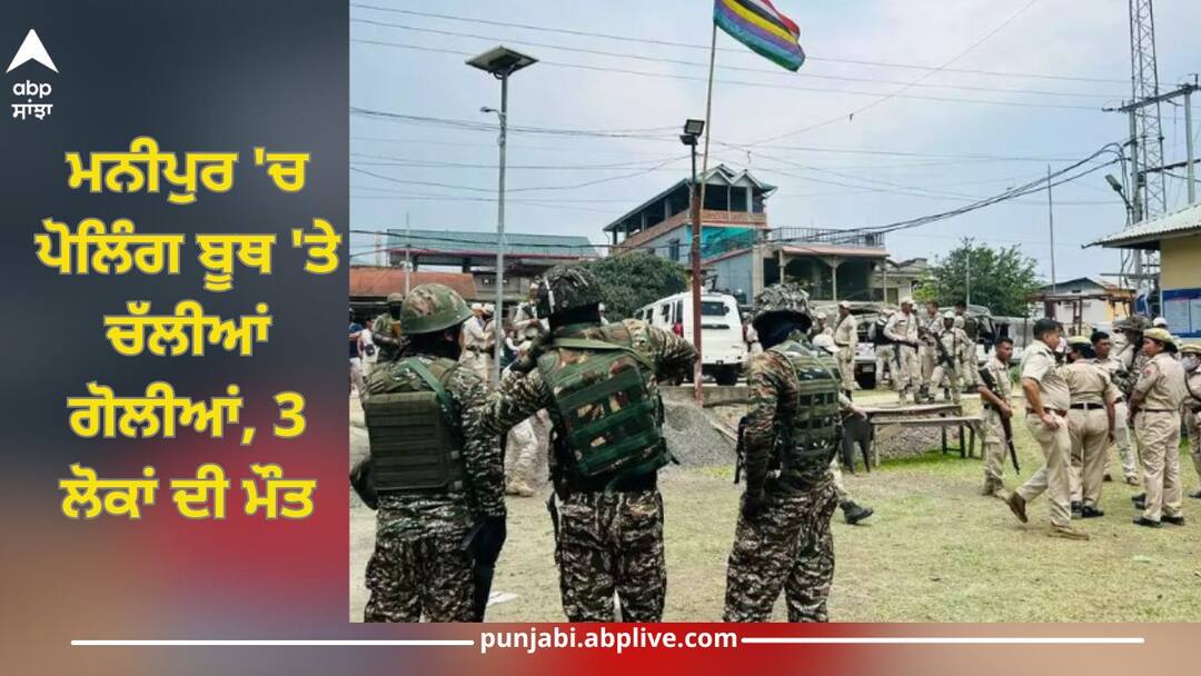 ਅੱਜ ਸਵੇਰੇ ਮਨੀਪੁਰ ਵਿੱਚ ਇੱਕ ਪੋਲਿੰਗ ਬੂਥ ਨੇੜੇ ਗੋਲੀਆਂ ਚਲਾਈਆਂ ਗਈਆਂ। ਸੋਸ਼ਲ ਮੀਡੀਆ 'ਤੇ ਵਾਇਰਲ ਹੋ ਰਹੀ 25 ਸੈਕਿੰਡ ਦੀ ਵੀਡੀਓ 'ਚ ਤੇਜ਼ ਗੋਲੀਆਂ ਦੀ ਆਵਾਜ਼ ਸੁਣਾਈ ਦੇਣ ਤੋਂ ਪਹਿਲਾਂ ਹੰਗਾਮਾ ਅਤੇ ਲੋਕ ਚੀਕਦੇ ਦਿਖਾਈ ਦੇ ਰਹੇ ਹਨ। ਮਿਲੀ ਜਾਣਕਾਰੀ ਅਨੁਸਾਰ ਇਸ ਹਮਲੇ ਦੇ ਵਿੱਚ ਤਿੰਨ ਲੋਕਾਂ ਦੀ ਮੌਤ ਹੋ ਗਈ ਹੈ।