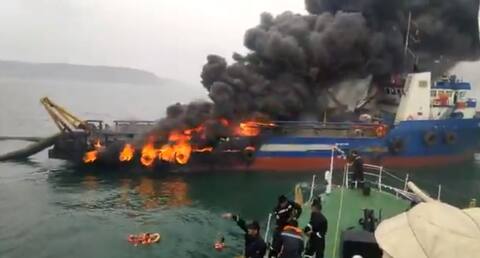 ਵਿਸ਼ਾਖਾਪਟਨਮ: ਤੱਟ ਰੱਖਿਅਕ ਸਮੁੰਦਰੀ ਜਹਾਜ਼ ਜੈਗੁਆਰ ‘ਚ ਸੋਮਵਾਰ ਸਵੇਰੇ ਅੱਗ ਲੱਗ ਗਈ। ਇਸ 'ਤੇ ਜਾਨ ਬਚਾਉਣ ਲਈ ਸ਼ਿਪ ‘ਤੇ ਸਵਾਰ 29 ਕਰੂ ਮੈਂਬਰ ਤੁਰੰਤ ਪਾਣੀ ‘ਚ ਕੁੱਦ ਗਏ। #WATCH Visakhapatnam: At 11:30 am today, 29 crew members of Offshore Support Vessel Coastal Jaguar jumped into water after a fire engulfed the vessel. 28 rescued by Indian Coast Guard. Search for 1 missing crew underway. Exact cause of fire yet to be ascertained. #AndhraPradesh pic.twitter.com/pksYGrC9ZE — ANI (@ANI) August 12, 2019 ਭਾਰਾਤੀ ਤੱਟ ਰੱਖਿਅਕ ਬਲ ਨੇ 28 ਕਰੂ ਮੈਂਬਰਸ ਨੂੰ ਤਾਂ ਬਚਾ ਲਿਆ ਹੈ, ਪਰ ਅਜੇ ਤਕ ਇੱਕ ਲਾਪਤਾ ਹੈ। ਉਸ ਦੀ ਭਾਲ ਕੀਤੀ ਜਾ ਰਹੀ ਹੈ। ਅੱਗ ਲੱਗਣ ਦੇ ਕਾਰਨਾਂ ਦਾ ਅਜੇ ਤਕ ਕੁਝ ਪਤਾ ਨਹੀ ਲੱਗ ਸਕਿਆ।