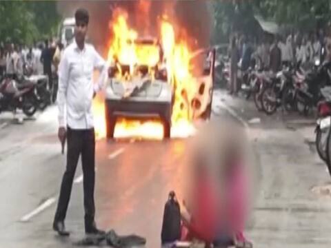 ਮੁੰਡੇ ਤੇ ਕੁੜੀ ਨੇ ਸੜਕ 'ਤੇ ਆਪਣੀ ਕਾਰ ਨੂੰ ਲਾਈ ਅੱਗ, ਫਿਰ ਫਾਇਰਿੰਗ ਕਰ ਦਿੱਤੀ