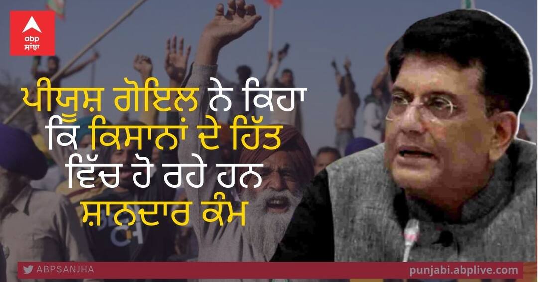 ਨਵੀਂ ਦਿੱਲੀ: ਕਿਸਾਨ ਨਵੇਂ ਖੇਤੀਬਾੜੀ ਕਾਨੂੰਨਾਂ ਨੂੰ ਵਾਪਸ ਲੈਣ ਦੀ ਜ਼ਿੱਦ ’ਤੇ 125 ਦਿਨਾਂ ਤੋਂ ਸੜਕਾਂ ’ਤੇ ਅੰਦੋਲਨ ਕਰ ਰਹੇ ਹਨ। ਕਿਸਾਨ ਆਗੂ ਲਗਾਤਾਰ ਕਹਿ ਰਹੇ ਹਨ ਕਿ ਜਦੋਂ ਤਕ ਤਿੰਨੇ ਖੇਤੀ ਕਾਨੂੰਨ ਵਾਪਸ ਨਹੀਂ ਲਏ ਜਾਂਦੇ ਉਦੋਂ ਤਕ ਕਿਸਾਨਾਂ ਅੰਦੋਲਨ ਜਾਰੀ ਰਹੇਗਾ। ਇਸ ਦੌਰਾਨ ਕੇਂਦਰੀ ਖੁਰਾਕ ਅਤੇ ਸਪਲਾਈ ਮੰਤਰੀ ਪਿਯੂਸ਼ ਗੋਇਲ ਨੇ ਕਿਹਾ ਹੈ ਕਿ ਮੋਦੀ ਸਰਕਾਰ ਨੇ ਕਿਸਾਨਾਂ ਲਈ ਵਧੀਆ ਕੰਮ ਕੀਤਾ ਹੈ।