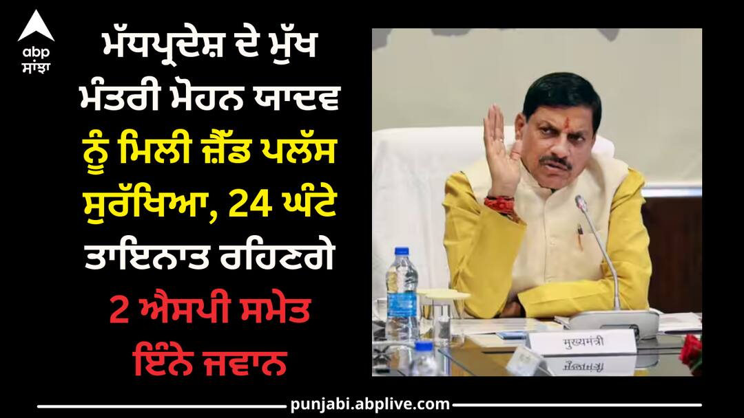 MP CM Mohan Yadav Security: ਮੱਧ ਪ੍ਰਦੇਸ਼ ਦੇ ਨਵੇਂ ਮੁੱਖ ਮੰਤਰੀ ਡਾਕਟਰ ਮੋਹਨ ਯਾਦਵ ਦੇਸ਼ ਦੇ ਉਨ੍ਹਾਂ ਚੋਣਵੇਂ ਲੋਕਾਂ ਵਿੱਚ ਸ਼ਾਮਲ ਹੋ ਗਏ ਹਨ ਜਿਨ੍ਹਾਂ ਨੂੰ ਜ਼ੈੱਡ ਪਲੱਸ ਸੁਰੱਖਿਆ ਮੁਹੱਈਆ ਕਰਵਾਈ ਗਈ ਹੈ। ਫਿਲਹਾਲ ਜ਼ੈੱਡ ਪਲੱਸ ਸੁਰੱਖਿਆ ਦੇਸ਼ ਦੇ ਚੁਣੇ ਹੋਏ ਲੋਕਾਂ ਲਈ ਹੀ ਉਪਲਬਧ ਹੈ। ਜਿਸ ਤੋਂ ਬਾਅਦ ਇਹ ਸਪੱਸ਼ਟ ਹੋ ਗਿਆ ਹੈ ਕਿ ਮੱਧ ਪ੍ਰਦੇਸ਼ ਦੇ ਨਵੇਂ ਸੀਐਮ ਡਾਕਟਰ ਮੋਹਨ ਯਾਦਵ ਲਈ 24 ਘੰਟੇ ਸਖ਼ਤ ਸੁਰੱਖਿਆ ਕਵਰ ਹੋਵੇਗੀ। ਸੀਐਮ ਡਾ: ਯਾਦਵ ਦੀ ਸੁਰੱਖਿਆ ਲਈ 36 ਜਵਾਨ ਹਮੇਸ਼ਾ ਤਾਇਨਾਤ ਰਹਿਣਗੇ।