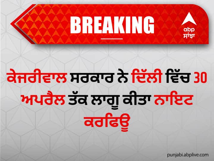 ਨਵੀਂ ਦਿੱਲੀ: ਕੇਜਰੀਵਾਲ ਸਰਕਾਰ ਨੇ ਦਿੱਲੀ ਵਿੱਚ 30 ਅਪਰੈਲ ਤੱਕ ਨਾਇਟ ਕਰਫਿਊ ਲਾਗੂ ਕਰ ਦਿੱਤਾ ਹੈ।ਦੇਸ਼ ਵਿੱਚ ਕੋਰੋਨਾ ਦੇ ਕਹਿਰ ਨੂੰ ਵੇਖਦੇ ਹੋਏ ਇਹ ਫੈਸਲਾ ਲਿਆ ਗਿਆ ਹੈ।ਦਿੱਲੀ ਵਿੱਚ ਰਾਤ 10 ਵਜੇ ਤੋਂ ਸਵੇਰ 5 ਵਜੇ ਤੱਕ ਇਹ ਨਾਇਟ ਕਰਫਿਊ ਜਾਰੀ ਰਹੇਗਾ।