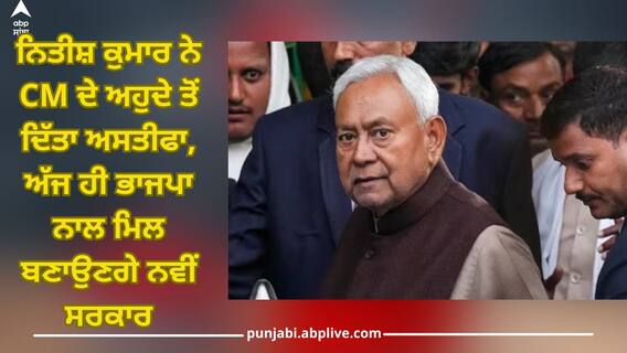 Nitish Kumar Resigns: ਬਿਹਾਰ ਦੇ ਮੁੱਖ ਮੰਤਰੀ ਨਿਤੀਸ਼ ਕੁਮਾਰ ਨੇ ਐਤਵਾਰ (28 ਜਨਵਰੀ) ਨੂੰ ਇੱਕ ਵੱਡਾ ਕਦਮ ਚੁੱਕਦੇ ਹੋਏ ਆਪਣੇ ਅਹੁਦੇ ਤੋਂ ਅਸਤੀਫਾ ਦੇ ਦਿੱਤਾ ਹੈ। ਉਹ ਜੇਡੀਯੂ ਵਿਧਾਇਕ ਦਲ ਦੀ ਬੈਠਕ ਤੋਂ ਬਾਅਦ ਰਾਜਪਾਲ ਰਾਜੇਂਦਰ ਅਰਲੇਕਰ ਨੂੰ ਮਿਲੇ ਅਤੇ ਆਪਣਾ ਅਸਤੀਫਾ ਸੌਂਪ ਦਿੱਤਾ। ਇਸ ਨਾਲ ਬਿਹਾਰ ਵਿੱਚ ਰਾਸ਼ਟਰੀ ਜਨਤਾ ਦਲ, ਜੇਡੀਯੂ, ਕਾਂਗਰਸ ਅਤੇ ਖੱਬੇ ਪੱਖੀ ਗਠਜੋੜ ਟੁੱਟ ਗਿਆ। ਹੁਣ ਨਿਤੀਸ਼ ਕੁਮਾਰ ਭਾਜਪਾ ਦੇ ਸਮਰਥਨ ਨਾਲ ਸਰਕਾਰ ਬਣਾਉਣ ਦਾ ਦਾਅਵਾ ਪੇਸ਼ ਕਰਨਗੇ।
