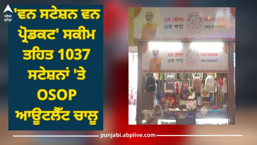 OSOP outlets open at 1037 stations: ‘ਇੱਕ ਸਟੇਸ਼ਨ ਇੱਕ ਉਤਪਾਦ’ ਯੋਜਨਾ ਦੇ ਤਹਿਤ, ਭਾਰਤੀ ਰੇਲਵੇ ਨੇ ਦੇਸ਼ ਭਰ ਵਿੱਚ ਕੁੱਲ 1037 ਸਟੇਸ਼ਨਾਂ ‘ਤੇ 1134 OSOP ਆਊਟਲੈੱਟਸ ਸਥਾਪਿਤ ਕੀਤੇ ਹਨ। ਰੇਲਵੇ ਦੀ 'ਵਨ ਸਟੇਸ਼ਨ ਵਨ ਪ੍ਰੋਡਕਟ' (OSOP) ਸਕੀਮ ਹੁਣ ਦੇਸ਼ ਭਰ ਦੇ 1,037 ਸਟੇਸ਼ਨਾਂ 'ਤੇ ਕੰਮ ਕਰ ਰਹੀ ਹੈ। ਇਸ ਸਕੀਮ ਦੇ ਤਹਿਤ ਸਥਾਨਕ ਲੋਕਾਂ ਨੂੰ ਸਵਦੇਸ਼ੀ ਉਤਪਾਦ ਵੇਚਣ ਲਈ ਵਿਸ਼ੇਸ਼ ਤੌਰ 'ਤੇ ਤਿਆਰ ਕੀਤੇ ਗਏ ਸੇਲਜ਼ ਆਊਟਲੇਟ ਦੀ ਪੇਸ਼ਕਸ਼ ਕੀਤੀ ਜਾਂਦੀ ਹੈ।