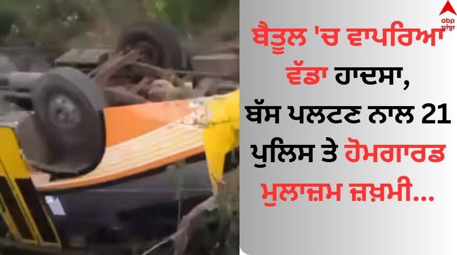 Betul Bus Overturns: ਛਿੰਦਵਾੜਾ ਤੋਂ ਪੋਲਿੰਗ ਡਿਊਟੀ ਤੋਂ ਬਾਅਦ ਪਰਤ ਰਹੀ ਹੋਮ ਗਾਰਡ ਅਤੇ ਪੁਲਿਸ ਮੁਲਾਜ਼ਮਾਂ ਨਾਲ ਭਰੀ ਬੱਸ ਪਲਟ ਗਈ। ਇਹ ਹਾਦਸਾ ਬੈਤੁਲ ਨੇੜੇ ਹਾਈਵੇਅ 'ਤੇ ਵਾਪਰਿਆ। ਇਸ ਹਾਦਸੇ 'ਚ ਕਈ ਸੁਰੱਖਿਆ ਕਰਮੀਆਂ ਦੇ ਜ਼ਖਮੀ ਹੋਣ ਦੀ ਖਬਰ ਹੈ। ਦੱਸਿਆ ਜਾ ਰਿਹਾ ਹੈ ਕਿ ਹਾਈਵੇਅ 'ਤੇ ਬੱਸ ਬੇਕਾਬੂ ਹੋਏ ਟਰੱਕ ਨਾਲ ਟਕਰਾ ਗਈ, ਜਿਸ ਤੋਂ ਬਾਅਦ ਇਹ ਪਲਟ ਗਈ। ਫਿਲਹਾਲ ਸੂਚਨਾ ਮਿਲਣ ਤੋਂ ਬਾਅਦ ਪੁਲਿਸ ਮੌਕੇ 'ਤੇ ਪਹੁੰਚ ਗਈ ਹੈ ਅਤੇ ਜ਼ਖਮੀਆਂ ਨੂੰ ਇਲਾਜ ਲਈ ਨੇੜੇ ਦੇ ਹਸਪਤਾਲ 'ਚ ਦਾਖਲ ਕਰਵਾਇਆ ਜਾ ਰਿਹਾ ਹੈ।