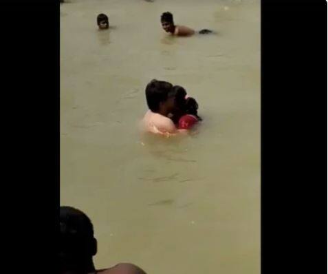 ਪਰ ਇਸ 'ਰਾਮ ਕੀ ਪੈੜੀ' ਦਾ ਇੱਕ ਵੀਡੀਓ ਵਾਇਰਲ ਹੋ ਰਿਹਾ ਹੈ, ਜਿਸ 'ਚ ਇੱਕ ਵਿਆਹੁਤਾ ਜੋੜਾ 'ਰਾਮ ਕੀ ਪੈੜੀ' 'ਚ ਲੋਕਾਂ ਵਿਚਕਾਰ ਇਸ਼ਨਾਨ ਕਰਦਾ ਨਜ਼ਰ ਆ ਰਿਹਾ ਹੈ। ਇਸ ਵਿਚਕਾਰ ਪਤਨੀ ਨੇ ਪਤੀ ਨੂੰ ਕਿੱਸ ਕਰ ਲਿਆ। ਇਹ ਕਿੱਸ ਬੇਚਾਰੇ ਪਤੀ ਲਈ ਮੁਸੀਬਤ ਦਾ ਕਾਰਨ ਬਣ ਗਈ। ਕਿੱਸ ਕਰਨ ਸਮੇਂ ਪਤਨੀ ਨੇ ਕਦੇ ਸੋਚਿਆ ਵੀ ਨਹੀਂ ਹੋਵੇਗਾ ਕਿ ਉਸ ਦੇ ਪਤੀ ਨੂੰ ਉਸ ਦੇ ਕਿੱਸ ਦੀ ਇੰਨੀ ਵੱਡੀ ਕੀਮਤ ਚੁਕਾਉਣੀ ਪਵੇਗੀ।