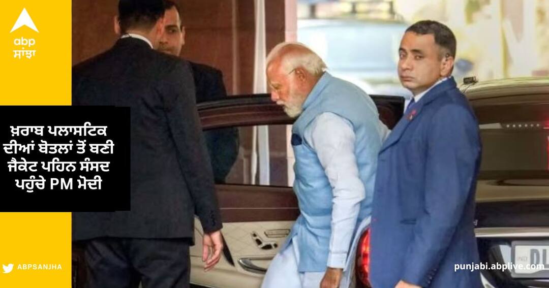 PM Narendra Modi Jacket : ਬਜਟ 'ਤੇ ਚਰਚਾ ਦੌਰਾਨ ਬੁੱਧਵਾਰ (8 ਫਰਵਰੀ) ਨੂੰ ਜਦੋਂ ਪ੍ਰਧਾਨ ਮੰਤਰੀ ਨਰਿੰਦਰ ਮੋਦੀ ਸੰਸਦ ਪਹੁੰਚੇ ਤਾਂ ਉਨ੍ਹਾਂ ਨੂੰ ਖਾਸ ਨੀਲੇ ਰੰਗ ਦੀ ਜੈਕੇਟ 'ਚ ਦੇਖਿਆ ਗਿਆ। ਇਹ ਜੈਕਟ ਵਰਤੀਆਂ ਗਈਆਂ ਪਲਾਸਟਿਕ ਦੀਆਂ ਬੋਤਲਾਂ ਨੂੰ ਰੀਸਾਈਕਲ ਕਰਕੇ ਬਣਾਈ ਗਈ ਹੈ। ਇਹ ਜੈਕੇਟ ਸੋਮਵਾਰ (6 ਫਰਵਰੀ) ਨੂੰ ਹੀ ਪ੍ਰਧਾਨ ਮੰਤਰੀ ਮੋਦੀ ਨੂੰ ਤੋਹਫੇ ਵਜੋਂ ਦਿੱਤੀ ਗਈ ਸੀ। ਦੋ ਦਿਨ ਬਾਅਦ ਪ੍ਰਧਾਨ ਮੰਤਰੀ ਇਸਨੂੰ ਪਹਿਨ ਕੇ ਸੰਸਦ ਪਹੁੰਚੇ।