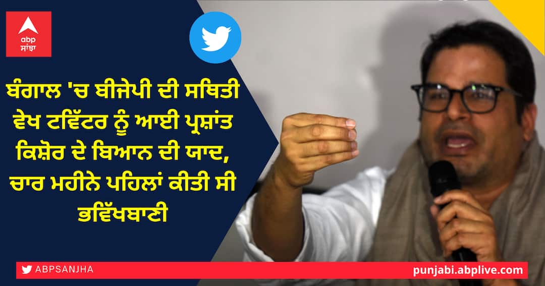ਚਾਰ ਮਹੀਨੇ ਪਹਿਲਾਂ, ਮਮਤਾ ਬੈਨਰਜੀ ਦਾ ਬੰਗਾਲ ਚੋਣ ਲਈ ਆਪਣੀ ਮੁਹਿੰਮ ਦਾ ਖਰੜਾ ਤਿਆਰ ਕਰਨ ਵਾਲੇ ਪ੍ਰਸ਼ਾਂਤ ਕਿਸ਼ੋਰ ਨੇ ਕਿਹਾ ਸੀ ਕਿ ਭਾਜਪਾ 294 ਮੈਂਬਰੀ ਵਿਧਾਨ ਸਭਾ ਵਿੱਚ “ਦੋਹਰੇ ਅੰਕ ਪਾਰ ਕਰਨ ਲਈ ਸੰਘਰਸ਼ ਕਰੇਗੀ” ਅਤੇ ਸਹੁੰ ਚੁਕੀ ਕਿ ਜੇ ਭਾਜਪਾ ਉਸ ਦੀ ਭਵਿੱਖਵਾਣੀ ਤੋਂ ਬਿਹਤਰ ਕੰਮ ਕਰਦੀ ਹੈ ਤਾਂ ਉਹ ਟਵਿੱਟਰ ਛੱਡ ਦੇਵੇਗਾ।