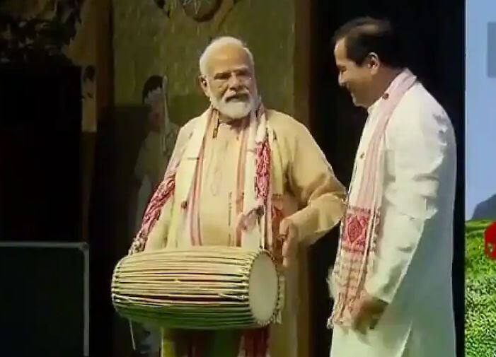 ਨਵੀਂ ਦਿੱਲੀ: ਪ੍ਰਧਾਨ ਮੰਤਰੀ ਜਿੱਥੇ ਵੀ ਸਥਾਨਕ ਤਿਉਹਾਰਾਂ ਵਿੱਚ ਸ਼ਾਮਲ ਹੁੰਦੇ ਹਨ, ਉੱਥੇ ਸੱਭਿਆਚਾਰ ਨਾਲ ਰਲਣ ਦੀ ਕੋਸ਼ਿਸ਼ ਕਰਦੇ ਹਨ। ਉਹ ਅੱਜ ਇਕ ਵਾਰ ਫਿਰ ਕੇਂਦਰੀ ਮੰਤਰੀ ਸਰਬਾਨੰਦ ਸੋਨੋਵਾਲ ਦੀ ਦਿੱਲੀ ਸਥਿਤ ਰਿਹਾਇਸ਼ 'ਤੇ ਆਯੋਜਿਤ ਰੌਂਗਲੀ ਬੀਹੂ ਸਮਾਰੋਹ 'ਚ ਹਾਜ਼ਰ ਹੋਏ ਅਤੇ ਵੱਖ-ਵੱਖ ਸਾਜ਼ ਵਜਾਉਣ ਦੀ ਕੋਸ਼ਿਸ਼ ਕੀਤੀ।ਇਸ ਦਾ ਇੱਕ ਵੀਡੀਓ ਸੋਸ਼ਲ ਮੀਡੀਆ 'ਤੇ ਵਾਇਰਲ ਹੋ ਰਿਹਾ ਹੈ।