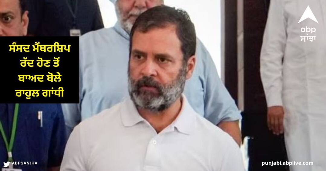Rahul Gandhi First Reaction : ਲੋਕ ਸਭਾ ਸਕੱਤਰੇਤ ਨੇ ਸ਼ੁੱਕਰਵਾਰ ਨੂੰ ਕਾਂਗਰਸ ਨੇਤਾ ਰਾਹੁਲ ਗਾਂਧੀ ਦੀ ਮੈਂਬਰਸ਼ਿਪ ਰੱਦ ਕਰ ਦਿੱਤੀ ਹੈ। ਇਸ ਫੈਸਲੇ ਤੋਂ ਬਾਅਦ ਰਾਹੁਲ ਗਾਂਧੀ ਨੇ ਟਵੀਟ ਕੀਤਾ ਕਿ ਮੈਂ ਭਾਰਤ ਦੀ ਆਵਾਜ਼ ਲਈ ਲੜ ਰਿਹਾ ਹਾਂ। ਮੈਂ ਕੋਈ ਵੀ ਕੀਮਤ ਚੁਕਾਉਣ ਲਈ ਤਿਆਰ ਹਾਂ। ਦਰਅਸਲ 'ਚ ਕਾਂਗਰਸ ਨੇਤਾ ਰਾਹੁਲ ਗਾਂਧੀ ਨੂੰ ਵੱਡਾ ਝਟਕਾ ਲੱਗਾ ਹੈ। ਲੋਕ ਸਭਾ ਸਕੱਤਰੇਤ ਨੇ ਰਾਹੁਲ ਗਾਂਧੀ ਦੀ ਸੰਸਦ ਮੈਂਬਰਸ਼ਿਪ ਰੱਦ ਕਰ ਦਿੱਤੀ ਹੈ। ਅੱਜ ਲੋਕ ਸਭਾ ਸਕੱਤਰੇਤ ਨੇ ਇਕ ਨੋਟੀਫਿਕੇਸ਼ਨ ਜਾਰੀ ਕਰਦਿਆਂ ਇਹ ਜਾਣਕਾਰੀ ਦਿੱਤੀ।