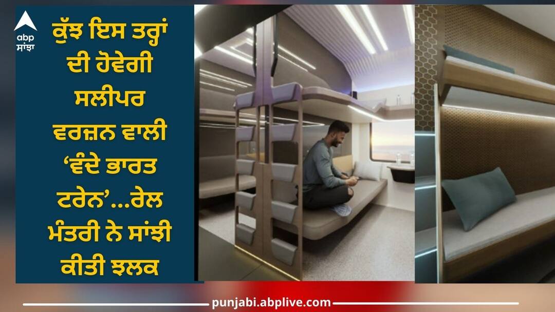 Vande Bharat Train Sleeper Version: ਭਾਰਤੀ ਰੇਲਵੇ ਜਲਦੀ ਹੀ ਇੱਕ ਸੰਕਲਪ ਟ੍ਰੇਨ ਲਿਆ ਰਿਹਾ ਹੈ। ਦਰਅਸਲ, ਜਲਦੀ ਹੀ ਵੰਦੇ ਭਾਰਤ ਐਕਸਪ੍ਰੈਸ ਟਰੇਨ ਅਤਿ ਆਧੁਨਿਕ ਸਲੀਪਰ ਬੋਗੀਆਂ ਨਾਲ ਲੈਸ ਹੋਣ ਜਾ ਰਹੀ ਹੈ। ਰੇਲ ਮੰਤਰੀ ਅਸ਼ਵਿਨੀ ਵੈਸ਼ਨਵ ਨੇ ਮੰਗਲਵਾਰ (3 ਅਕਤੂਬਰ) ਨੂੰ ਸੋਸ਼ਲ ਮੀਡੀਆ ਪਲੇਟਫਾਰਮ X 'ਤੇ ਵੰਦੇ ਭਾਰਤ ਟਰੇਨ ਦੇ ਸਲੀਪਰ ਸੰਸਕਰਣ ਦੀ ਝਲਕ ਦੇਣ ਵਾਲੀਆਂ ਤਸਵੀਰਾਂ ਸਾਂਝੀਆਂ ਕੀਤੀਆਂ।