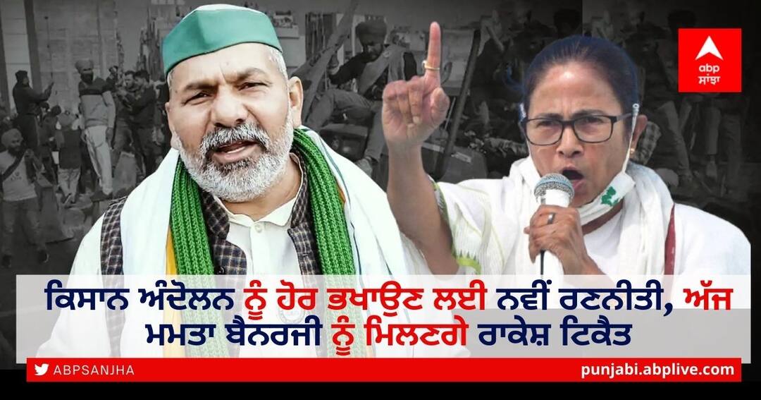 ਇਸ ਤੋਂ ਇਲਾਵਾ ਰਾਕੇਸ਼ ਟਿਕੈਤ ਮਮਤਾ ਬੈਨਰਜੀ ਨੂੰ ਚੋਣਾਂ 'ਚ ਉਨ੍ਹਾਂ ਦੀ ਸ਼ਾਨਦਾਰ ਜਿੱਤ ਲਈ ਵਧਾਈ ਵੀ ਦੇਣਗੇ। ਟਿਕੈਤ ਨੇ ਬੰਗਾਲ ਚੋਣਾਂ ਵਿੱਚ ਮਮਤਾ ਬੈਨਰਜੀ ਲਈ ਚੋਣ ਪ੍ਰਚਾਰ ਵੀ ਕੀਤਾ ਸੀ। ਭਾਰਤੀ ਕਿਸਾਨ ਯੂਨੀਅਨ ਕੇਂਦਰ ਸਰਕਾਰ ਵੱਲੋਂ ਪਾਸ ਕੀਤੇ ਗਏ ਤਿੰਨ ਖੇਤੀ ਕਾਨੂੰਨਾਂ ਦੇ ਵਿਰੋਧ ਵਿੱਚ ਪਿਛਲੇ ਸਾਲ 26 ਨਵੰਬਰ ਤੋਂ ਕਿਸਾਨ ਕੌਮੀ ਰਾਜਧਾਨੀ ਦਿੱਲੀ ਦੀਆਂ ਸਰਹੱਦਾਂ 'ਤੇ ਅੰਦੋਲਨ ਕਰ ਰਹੇ ਹਨ।