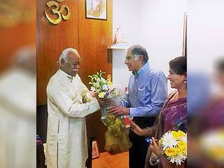 ਨਾਗਪੁਰ: ਭਾਰਤ ਦੇ ਉੱਘੇ ਕਾਰੋਬਾਰੀ ਰਤਨ ਟਾਟਾ ਬੁੱਧਵਾਰ ਨੂੰ ਆਰਐਸਐਸ ਦੇ ਹੈੱਡਕੁਆਟਰ ਵਿੱਚ ਸੰਘ ਮੁਖੀ ਮੋਹਨ ਭਾਗਵਤ ਨੂੰ ਮਿਲੇ। ਭਾਗਵਤ ਤੇ ਟਾਟਾ ਦੀ ਬੈਠਕ ਦੋ ਘੰਟੇ ਤਕ ਚੱਲੀ। ਲੋਕ ਸਭਾ ਚੋਣਾਂ ਤੋਂ ਪਹਿਲਾਂ ਕਾਰੋਬਾਰੀਆਂ ਤੇ ਸਿਆਸਤਦਾਨਾਂ ਵਿੱਚ ਅਜਿਹੀਆਂ ਮੁਲਾਕਾਤਾਂ ਅਕਸਰ ਦੇਖੀਆਂ ਜਾ ਸਕਦੀਆਂ ਹਨ, ਪਰ ਸੰਘ ਨੇ ਰਤਨ ਟਾਟਾ ਤੇ ਮੋਹਨ ਭਾਗਵਤ ਦੀ ਇਸ ਮੁਲਾਕਾਤ ਨੂੰ ਮਹਿਜ਼ ਆਪਸੀ ਮੇਲ-ਜੋਲ ਦੱਸਿਆ।
