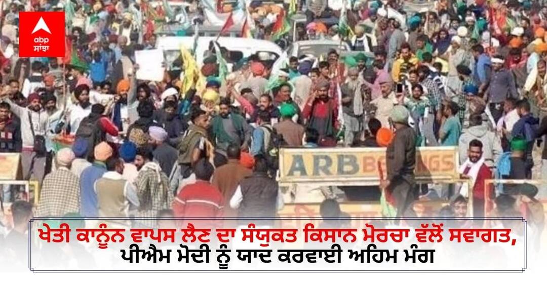 ਉਧਰ, ਪ੍ਰਧਾਨ ਮੰਤਰੀ ਦੇ ਐਲਾਨ ਦਾ ਸੁਆਗਤ ਕਰਦੇ ਹੋਏ ਸੰਯੁਕਤ ਕਿਸਾਨ ਮੋਰਚਾ ਨੇ ਕਿਹਾ ਕਿ ਇਹ ਕਾਨੂੰਨ ਸੰਸਦ ਵਿੱਚ ਰੱਦ ਹੋਣ ਦਾ ਇੰਤਜ਼ਾਰ ਕਰਾਂਗੇ। ਕਿਸਾਨ ਮੋਰਚੇ ਨੇ ਇਹ ਵੀ ਯਾਦ ਕਰਵਾਇਆ ਹੈ ਕਿ ਕਿਸਾਨ ਅੰਦੋਲਨ ਦੀ ਅਹਿਮ ਮੰਗ ਸੀ ਕਿ ਘੱਟੋ-ਘੱਟ ਸਮਰਥਨ ਮੁੱਲ 'ਤੇ ਕਾਨੂੰਨ ਬਣਾਇਆ ਜਾਵੇ, ਜੋ ਅਜੇ ਲੰਬਿਤ ਹੈ। ਸਰਕਾਰ ਦੇ ਰਵੱਈਏ 'ਚ ਬਦਲਾਅ ਨੂੰ ਲੈ ਕੇ ਕਿਸਾਨ ਮੋਰਚੇ ਦੇ ਆਗੂਆਂ ਦੀ ਮੀਟਿੰਗ ਬੁਲਾਈ ਜਾਵੇਗੀ।