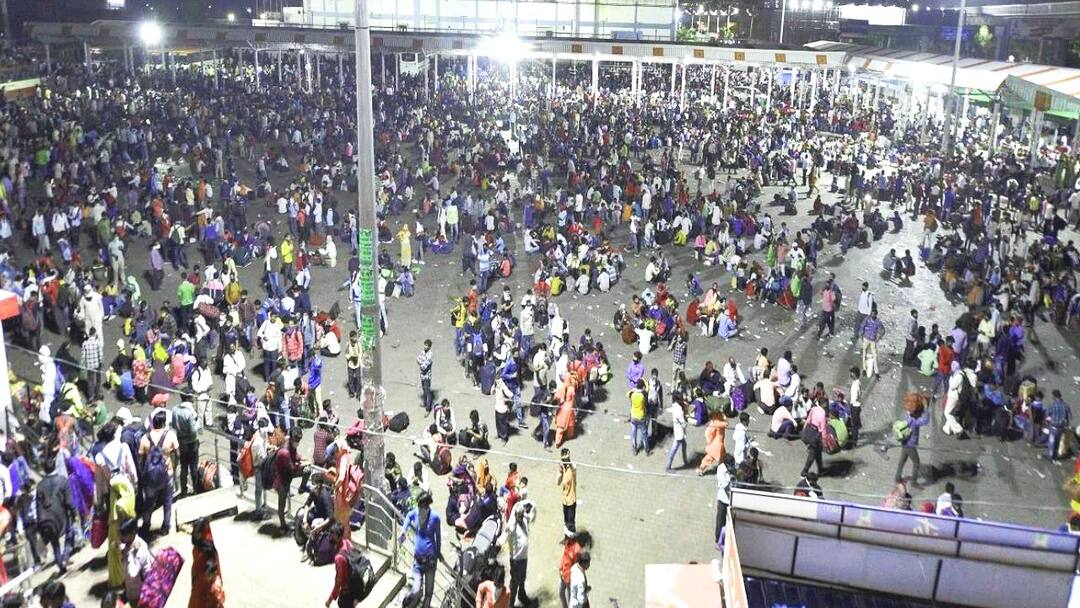 ਕੋਰੋਨਾਵਾਇਰਸ ਮਹਾਮਾਰੀ ਦੇ ਵਿਚਕਾਰ ਭਾਰਤ ਵਿੱਚ ਚੱਲ ਰਹੇ ਲੌਕਡਾਉਨ ਕਾਰਨ ਵੱਡੀ ਗਿਣਤੀ ਵਿੱਚ ਕਾਮੇ ਸ਼ਹਿਰ ਛੱਡ ਕੇ ਪਿੰਡ ਜਾਣ ਲਈ ਮਜਬੂਰ ਹਨ। ਵੱਡੀ ਗਿਣਤੀ ਲੋਕ ਸੜਕਾਂ 'ਤੇ ਆਉਣ ਕਰਕੇ ਮੋਦੀ ਸਰਕਾਰ ਵੱਲੋਂ ਐਲਾਨੇ ਲੌਕਡਾਊਨ ਦੀਆਂ ਧੱਜੀਆਂ ਉੱਡ ਰਹੀਆਂ ਹਨ।