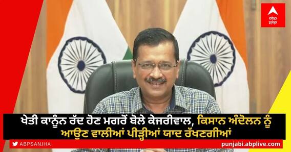 ਚੰਡੀਗੜ੍ਹ: ਪ੍ਰਧਾਨ ਮੰਤਰੀ ਨਰਿੰਦਰ ਮੋਦੀ ਵੱਲੋਂ ਖੇਤੀ ਕਾਨੂੰਨ ਵਾਪਸ ਲੈਣ ਮਗਰੋਂ ਆਮ ਆਦਮੀ ਪਾਰਟੀ ਦੇ ਸੁਪਰੀਮੋ ਅਰਵਿੰਦ ਕੇਜਰੀਵਾਲ ਨੇ ਕਿਹਾ ਹੈ ਕਿ ਅੱਜ ਪ੍ਰਕਾਸ਼ ਦਿਹਾੜੇ ਮੌਕੇ ਕਿੰਨੀ ਵੱਡੀ ਖਬਰ ਮਿਲੀ। ਤਿੰਨੇ ਖੇਤੀ ਕਾਨੂੰਨ ਰੱਦ ਕਰ ਦਿੱਤੇ ਗਏ। 700 ਤੋਂ ਵੱਧ ਕਿਸਾਨ ਸ਼ਹੀਦ ਹੋ ਹਏ। ਉਨ੍ਹਾਂ ਦੀ ਸ਼ਹਾਦਤ ਅਮਰ ਰਹੇਗੀ। ਆਉਣ ਵਾਲੀਆਂ ਪੀੜ੍ਹੀਆਂ ਯਾਦ ਰੱਖਣਗੀਆਂ ਕਿ ਕਿਵੇਂ ਇਸ ਦੇਸ਼ ਦੇ ਕਿਸਾਨਾਂ ਨੇ ਖੇਤੀ ਤੇ ਕਿਸਾਨੀ ਨੂੰ ਬਚਾਉਣ ਲਈ ਆਪਣੀਆਂ ਜਾਨਾਂ ਵਾਰ ਦਿੱਤੀਆਂ। ਮੈਂ ਆਪਣੇ ਦੇਸ਼ ਦੇ ਕਿਸਾਨਾਂ ਨੂੰ ਸਲਾਮ ਕਰਦਾ ਹਾਂ।