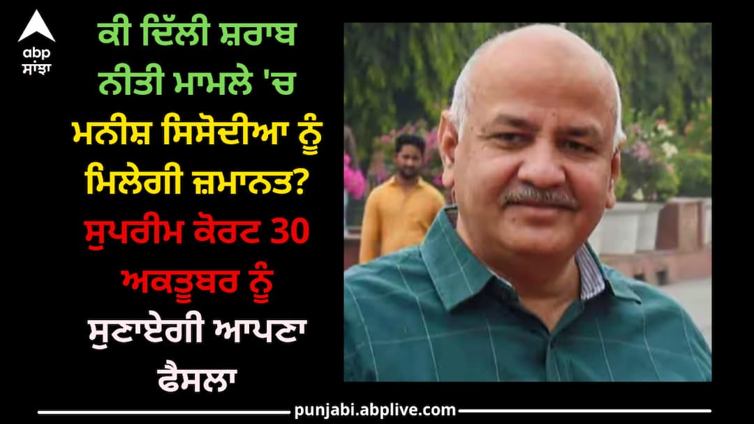 Delhi Liquor Policy Case: ਸ਼ਰਾਬ ਨੀਤੀ ਮਾਮਲੇ 'ਚ ਮਨੀਸ਼ ਸਿਸੋਦੀਆ ਦੀ ਜ਼ਮਾਨਤ ਪਟੀਸ਼ਨ 'ਤੇ ਸੁਪਰੀਮ ਕੋਰਟ 30 ਅਕਤੂਬਰ ਨੂੰ ਫੈਸਲਾ ਸੁਣਾਏਗੀ। ਇਹ ਫੈਸਲਾ ਜਸਟਿਸ ਸੰਜੀਵ ਖੰਨਾ ਅਤੇ ਜਸਟਿਸ ਐਸਵੀਐਨ ਭੱਟੀ ਦੀ ਬੈਂਚ ਵੱਲੋਂ ਸੁਣਾਇਆ ਜਾਵੇਗਾ। ਜ਼ਿਕਰਯੋਗ ਹੈ ਕਿ ਹਾਲ ਹੀ 'ਚ ਇਸ ਮਾਮਲੇ ਦੀ ਸੁਣਵਾਈ ਤੋਂ ਬਾਅਦ ਅਦਾਲਤ ਨੇ ਆਪਣਾ ਫੈਸਲਾ ਸੁਰੱਖਿਅਤ ਰੱਖ ਲਿਆ ਸੀ।
