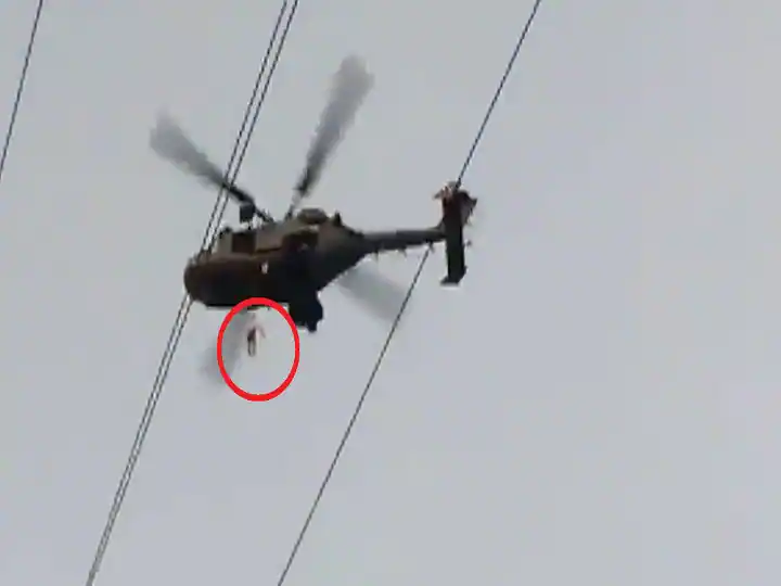 ਹਵਾਈ ਸੈਨਾ ਦੇ ਹੈਲੀਕਾਪਟਰ ਰਾਹੀਂ ਇਕ-ਇਕ ਕਰਕੇ ਲੋਕਾਂ ਨੂੰ ਬਚਾਇਆ ਜਾ ਰਿਹਾ ਹੈ। ਹਾਲਾਂਕਿ ਬਚਾਅ ਦੌਰਾਨ ਇਕ ਵਿਅਕਤੀ ਦੇ ਖਾਈ 'ਚ ਡਿੱਗਣ ਦਾ ਵੀਡੀਓ ਸਾਹਮਣੇ ਆਇਆ ਹੈ। ਵੀਡੀਓ ਦੇਖ ਕੇ ਕੋਈ ਵੀ ਹੈਰਾਨ ਰਹਿ ਜਾਵੇਗਾ। ਪਤਾ ਲੱਗਾ ਹੈ ਕਿ ਰੋਪਵੇਅ 'ਚ ਫਸੇ ਸੈਲਾਨੀਆਂ ਨੂੰ ਲਗਾਤਾਰ ਸਬਰ ਰੱਖਣ ਦੀ ਅਪੀਲ ਕੀਤੀ ਜਾ ਰਹੀ ਹੈ। ਹਾਲਾਂਕਿ ਲੋਕ ਆਪਣੀ ਜਾਨ ਨੂੰ ਖਤਰੇ 'ਚ ਦੇਖ ਕੇ ਕਾਫੀ ਹੈਰਾਨ ਹਨ।