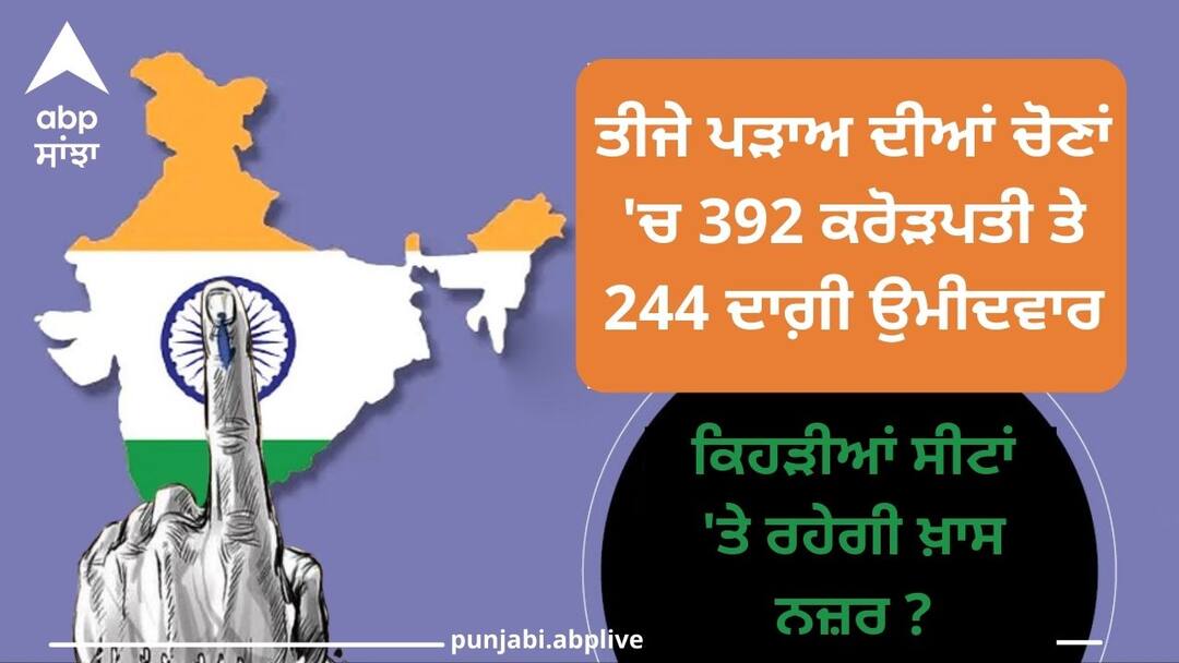 Election 2024: ਲੋਕ ਸਭਾ ਚੋਣਾਂ 2024 ਤਹਿਤ ਤੀਜੇ ਪੜਾਅ ਦੀ ਵੋਟਿੰਗ 7 ਮਈ ਨੂੰ ਹੋਣ ਜਾ ਰਹੀ ਹੈ। ਇਸ ਦੌਰਾਨ 11 ਰਾਜਾਂ (10 ਰਾਜ ਅਤੇ ਇੱਕ ਕੇਂਦਰ ਸ਼ਾਸਤ ਪ੍ਰਦੇਸ਼) ਦੀਆਂ 93 ਸੀਟਾਂ 'ਤੇ ਵੋਟਿੰਗ ਹੋਵੇਗੀ। ਇਨ੍ਹਾਂ ਰਾਜਾਂ ਵਿੱਚ ਬਿਹਾਰ, ਮੱਧ ਪ੍ਰਦੇਸ਼, ਉੱਤਰ ਪ੍ਰਦੇਸ਼, ਮਹਾਰਾਸ਼ਟਰ, ਕਰਨਾਟਕ, ਗੋਆ, ਅਸਾਮ, ਗੁਜਰਾਤ ਅਤੇ ਪੱਛਮੀ ਬੰਗਾਲ ਸ਼ਾਮਲ ਹਨ। ਇਸ ਪੜਾਅ ਵਿੱਚ ਕੁੱਲ 1,352 ਉਮੀਦਵਾਰ ਹਨ। ਜਿਸ ਵਿੱਚ ਚਾਰ ਸਾਬਕਾ ਮੁੱਖ ਮੰਤਰੀ (ਸ਼ਿਵਰਾਜ ਸਿੰਘ ਚੌਹਾਨ, ਦਿਗਵਿਜੇ ਸਿੰਘ, ਜਗਦੀਸ਼ ਸ਼ੈੱਟਰ ਅਤੇ ਬਸਵਰਾਜ ਬੋਮਈ) ਸ਼ਾਮਲ ਹਨ।