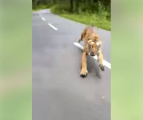 ਪਿਛਲੇ ਦਿਨਾਂ ਤੋਂ ਵੀਡੀਓ ਸੋਸ਼ਲ ਮੀਡੀਆ 'ਤੇ ਖ਼ੂਬ ਵਾਇਰਲ ਹੋ ਰਹੀ ਹੈ, ਜਿਸ ਵਿੱਚ ਇੱਕ ਸ਼ੇਰ ਮੋਟਰਸਾਈਕਲ ਸਵਾਰਾਂ ਦਾ ਪਿੱਛਾ ਕਰਦਾ ਦਿਖਾਈ ਦੇ ਰਿਹਾ ਹੈ। ਇਹ ਘਟਨਾ ਕੇਰਲ ਦੀ ਮੁਥਾਂਗਾ ਜੰਗਲੀ ਜੀਵ ਰੱਖ ਵਿੱਚ ਵਾਪਰੀ। ਵੀਡੀਓ ਵਿੱਚ ਦਿਖਾਈ ਦੇ ਰਿਹਾ ਹੈ ਕਿ ਸੈਂਚੂਰੀ ਵਿੱਚੋਂ ਗੁਜ਼ਰ ਰਹੇ ਦੋ ਮੋਟਰਸਾਈਕਲ ਸਵਾਰ ਵੀਡੀਓ ਬਣਾਉਂਦੇ ਜਾ ਰਹੇ ਹਨ ਤੇ ਇੰਨੇ ਵਿੱਚ ਸ਼ੇਰ ਦੇ ਗੱਜਣ ਦੀ ਆਵਾਜ਼ ਸੁਣਾਈ ਦਿੰਦੀ ਹੈ। ਅੱਖ ਦੇ ਫੋਰ ਵਿੱਚ ਹੀ ਸ਼ੇਰ ਸੜਕ 'ਤੇ ਆ ਜਾਂਦਾ ਹੈ ਤੇ ਮੋਟਰਸਾਈਕਲ ਦਾ ਪਿੱਛਾ ਕਰਦਾ ਹੈ। ਕੁਝ ਸੈਕਿੰਡ ਪਿੱਛਾ ਕਰਨ ਮਗਰੋਂ ਸ਼ੇਰ ਸੜਕ ਦੇ ਦੂਜੇ ਪਾਸੇ ਜੰਗਲ ਵਿੱਚ ਗੁਆਚ ਜਾਂਦਾ ਹੈ। ਸ਼ੇਰ ਨਾਲ ਟਾਕਰੇ ਦੀ ਇਹ ਰੌਂਗਟੇ ਖੜ੍ਹੇ ਕਰ ਦੇਣ ਵਾਲੀ ਵੀਡੀਓ ਨੂੰ ਲੋਕ ਕਾਫੀ ਪਸੰਦ ਕਰ ਰਹੇ ਹਨ। ਇਹ ਵੀਡੀਓ ਜੰਗਲ ਤੇ ਜੰਗਲੀ ਜੀਵ ਰੱਖਿਆ ਸੁਸਾਇਟੀ (FAWPS) ਨੇ ਆਪਣੇ ਫੇਸਬੁੱਕ ਪੇਜ 'ਤੇ ਪਾਈ ਹੈ। ਤੁਸੀਂ ਵੀ ਦੇਖੋ ਇਹ ਵੀਡੀਓ। ਦੇਖੋ ਵੀਡੀਓ: