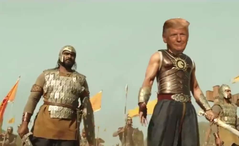 -ਟਰੰਪ ਦਾ ਬਾਹੂਬਲੀ ਰੂਪ ਸੋਸ਼ਲ ਮੀਡੀਆ 'ਤੇ ਕਾਫ਼ੀ ਵਾਇਰਲ ਹੋ ਰਿਹਾ ਹੈ।