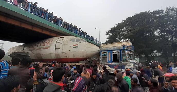 ਪੱਛਮੀ ਬੰਗਾਲ ਦੇ ਦੁਰਗਾਪੁਰ ਜ਼ਿਲ੍ਹੇ ਤੋਂ ਇੱਕ ਵੀਡੀਓ ਸਾਹਮਣੇ ਆਈ ਹੈ ਜਿਸ ‘ਚ ਭਾਰਤੀ ਡਾਕ ਵਿਭਾਗ ਦੇ ਜਹਾਜ਼ ਨੂੰ ਪੁੱਲ ਹੇਠ ਫਸਿਆ ਦਿਖਾਇਆ ਗਿਆ ਹੈ। ਇਸ ਪੁਰਾਣੇ ਜਹਾਜ਼ ਨੂੰ ਟ੍ਰੇਲਰ ‘ਤੇ ਲੱਦ ਕੇ ਕੋਲਕਾਤਾ ਤੋਂ ਭੇਜਿਆ ਗਿਆ ਸੀ। ਇਸ ਦੌਰਾਨ ਇਹ ਆਪਣੀ ਉਚਾਈ ਕਰਕੇ ਪੁੱਲ ਹੇਠ ਫਸ ਗਿਆ।