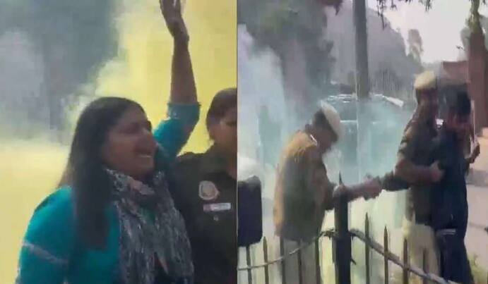 Delhi news: ਦਿੱਲੀ ਪੁਲਿਸ ਨੇ ਸੰਸਦ ਦੇ ਬਾਹਰ ਪ੍ਰਦਰਸ਼ਨ ਕਰ ਰਹੇ ਇੱਕ ਆਦਮੀ ਅਤੇ ਇੱਕ ਔਰਤ ਨੂੰ ਹਿਰਾਸਤ ਵਿੱਚ ਲਿਆ ਹੈ। ਦੋਵੇਂ ਸੰਸਦ ਭਵਨ ਦੇ ਬਾਹਰ ਸਮੋਕ ਕਲਰ ਉੜਾ ਕੇ ਪ੍ਰਦਰਸ਼ਨ ਕਰ ਰਹੇ ਸਨ। ਇਸ ਦੌਰਾਨ ਉਥੇ ਮੌਜੂਦ ਪੁਲਿਸ ਦੋਵਾਂ ਨੂੰ ਹਿਰਾਸਤ 'ਚ ਲੈ ਕੇ ਥਾਣੇ ਲੈ ਗਈ।