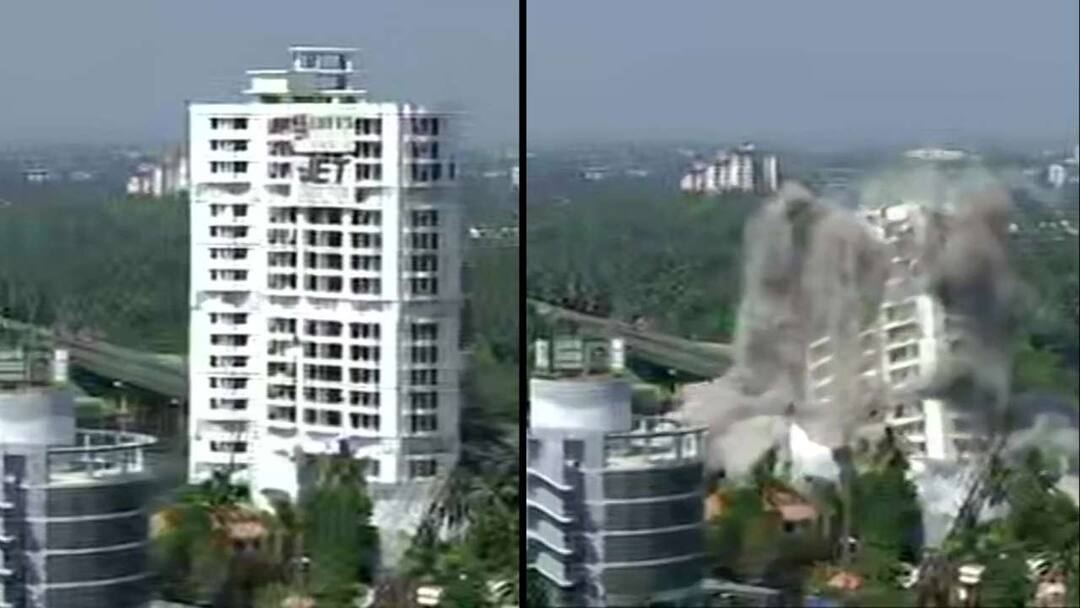 ਕੇਰਲ: ਕੋਚੀ ਦੀ ਮਾਰਡੂ ਮਿਊਂਸਿਪੈਲਿਟੀ 'ਚ ਬਣੀਆਂ ਚਾਰ ਇਮਾਰਤਾਂ ਨੂੰ ਢਾਹੁਣ ਦੇ ਸੁਪਰੀਮ ਕੋਰਟ ਦੇ ਹੁਕਮ ਨੂੰ ਸ਼ਨੀਵਾਰ ਨੂੰ ਲਾਗੂ ਕੀਤਾ ਗਿਆ ਅਤੇ ਧਮਾਕੇ 'ਚ ਦੋ ਗੈਰ ਕਾਨੂੰਨੀ ਅਪਾਰਟਮੈਂਟ ਕੰਪਲੈਕਸ ਢਾਹ ਦਿੱਤਾ ਗਿਆ। ਪਹਿਲਾ ਗੈਰਕਨੂੰਨੀ ਕੰਪਲੈਕਸ 'ਹੋਲੀ ਫੇਥ ਐਚ 20' ਸਵੇਰੇ 11.18 ਵਜੇ ਢਾਹੀ ਗਈ, ਜਿਸ ਤੋਂ ਕੁਝ ਮਿੰਟਾਂ ਬਾਅਦ ਅਲਫ਼ਾ ਸੇਰੇਨ ਅਪਾਰਟਮੈਂਟ ਦੇ ਟਾਵਰ ਢਾਹ ਦਿੱਤਾ ਗਿਆ। ਇਮਾਰਤ ਡਿੱਗਣ ਕਾਰਨ ਚਾਰੇ ਪਾਸੇ ਧੂੜ ਸੀ। ਇਮਾਰਤ ਢਹਿਣ ਸਮੇਂ ਹਜ਼ਾਰਾਂ ਲੋਕ ਮੌਜੂਦ ਸੀ ਅਤੇ ਸਾਰੀ ਘਟਨਾ ਵੇਖ ਰਹੇ ਸੀ। ਦੋਵੇਂ ਅਪਾਰਟਮੈਂਟਾਂ 'ਚ ਰਹਿਣ ਵਾਲੇ ਲੋਕਾਂ ਨੂੰ ਅੱਜ ਸਵੇਰੇ ਢਾਹੁਣ ਤੋਂ ਕੁਝ ਘੰਟੇ ਪਹਿਲਾਂ ਬਾਹਰ ਕੱਢਿਆ ਗਿਆ ਸੀ। ਸੁਪਰੀਮ ਕੋਰਟ ਨੇ ਇਨ੍ਹਾਂ ਕੋਸਟਲ ਰੈਗੂਲੇਸ਼ਨ ਜ਼ੋਨ ਦੇ ਨਿਯਮਾਂ ਦੀ ਉਲੰਘਣਾ ਨੂੰ ਗੈਰਕਾਨੂੰਨੀ ਮੰਨਿਆ ਅਤੇ ਇਨ੍ਹਾਂ ਨੂੰ ਢਾਹੁਣ ਦਾ ਐਲਾਨ ਕੀਤਾ।