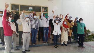 ਰੋਸ ਕਰ ਰਹੇ ਮੁਸਾਜ਼ਮਾਂ ਨੇ ਪੰਜਾਬ ਸਰਕਾਰ ਖਿਲਾਫ ਨਾਅਰੇਬਾਜ਼ੀ ਕੀਤੀ ਤੇ ਕਿਹਾ ਕਿ ਸਰਕਾਰ ਕੋਰੋਨਾ ਖਿਲਾਫ ਜੋ ਡਾਕਟਰਾਂ ਤੇ ਬਾਕੀ ਸਟਾਫ ਦੇ ਸਿਰ ‘ਤੇ ਜੰਗ ਲੜਨ ਦੀ ਗੱਲ ਕਰ ਰਹੀ ਹੈ, ਉਹ ਸਿਰਫ਼ ਕਾਗ਼ਜ਼ੀ ਗੱਲਾਂ ਤੱਕ ਹੀ ਸੀਮਤ ਹੈ। ਜ਼ਮੀਨੀ ਹਕੀਕਤ ਇਹ ਹੈ ਕਿ ਉਨ੍ਹਾਂ ਦੇ ਕੋਲ ਪਹਿਨਣ ਨੂੰ ਮਾਸਕ ਤੱਕ ਨਹੀਂ। ਮਾਸਕ ਉਹ ਖੁਦ ਆਪ ਤਿਆਰ ਕਰਵਾ ਕੇ ਇਸਤੇਮਾਲ ਕਰ ਰਹੇ ਹਨ। ਅਜਿਹੇ ਵਿੱਚ ਉਨ੍ਹਾਂ ਦੀ ਜਾਨ ਨਾਲ ਸਰਕਾਰ ਖਿਲਵਾੜ ਕਰ ਰਹੀ ਹੈ।