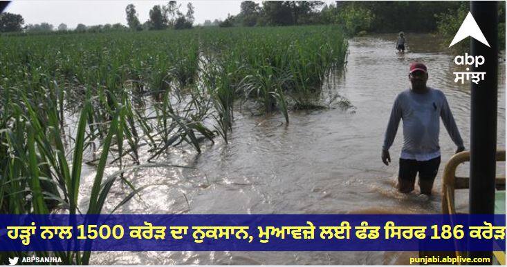 Flood in Punjab: ਪੰਜਾਬ ਵਿੱਚ ਇਸ ਵਾਰ ਹੜ੍ਹਾਂ ਨੇ ਤਬਾਹੀ ਮਚਾਈ ਹੈ। ਸੂਬੇ ਦੇ 19 ਜ਼ਿਲ੍ਹੇ ਹੜ੍ਹਾਂ ਨਾਲ ਸਭ ਤੋਂ ਵੱਧ ਪ੍ਰਭਾਵਿਤ ਹੋਏ ਹਨ। ਪੰਜਾਬ ਸਰਕਾਰ ਦੀ ਰਿਪੋਰਟ ਅਨੁਸਾਰ 1500 ਕਰੋੜ ਤੋਂ ਵੱਧ ਦਾ ਨੁਕਸਾਨ ਹੋਇਆ ਸੀ। ਦੂਜੇ ਪਾਸੇ ਭਗਵੰਤ ਮਾਨ ਸਰਕਾਰ ਨੇ ਫ਼ਸਲਾਂ ਦੇ ਨੁਕਸਾਨ ਦੀ ਭਰਪਾਈ ਲਈ ਸਿਰਫ਼ 186 ਕਰੋੜ 12 ਲੱਖ 63,020 ਰੁਪਏ ਦੀ ਰਾਸ਼ੀ ਹੀ ਜਾਰੀ ਕੀਤੀ ਹੈ। ਪੰਜਾਬ ਦੇ 19 ਜ਼ਿਲ੍ਹਿਆਂ ਦੇ 1500 ਤੋਂ ਵੱਧ ਪਿੰਡ ਹੜ੍ਹ ਦੀ ਲਪੇਟ ਵਿੱਚ ਆ ਗਏ ਹਨ।