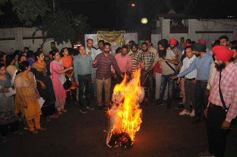 ਬਠਿੰਡਾ: ਸਿੱਖਿਆ ਵਿਭਾਗ ਨੇ ਜ਼ਿਲ੍ਹੇ ਦੇ 16 ਹੋਰ ਅਧਿਆਪਕਾਂ ਦੇ ਤਬਾਦਲੇ ਕਰ ਦਿੱਤੇ ਹਨ। ਇਨ੍ਹਾਂ ਵਿੱਚ ਜ਼ਿਆਦਾਤਰ ਅਧਿਆਪਕ ਯੂਨੀਅਨ ਦੇ ਆਗੂ ਹਨ। ‘ਸਾਂਝਾ ਅਧਿਆਪਕ ਮੋਰਚਾ, ਪੰਜਾਬ’ ਦੇ ਬੈਨਰ ਹੇਠ, ਅਧਿਆਪਕਾਂ ਨੇ ਰੋਸ ਮਾਰਚ ਕੀਤਾ ਤੇ ਡੀਸੀ ਦੀ ਰਿਹਾਇਸ਼ ਸਾਹਮਣੇ ਸੂਬਾ ਸਰਕਾਰ ਦਾ ਪੁਤਲਾ ਫੂਕਿਆ। ਯਾਦ ਰਹੇ ਕਿ ਇਸ ਤੋਂ ਪਹਿਲਾਂ ਅਕਤੂਬਰ ਵਿੱਚ 8 ਅਧਿਆਪਕਾਂ (ਛੇ SSA/RMSA ਤੋਂ ਤੇ ਦੋ ਡੈਮੋਕਰੇਟਿਕ ਅਧਿਆਪਕਾਂ ਦੇ ਫਰੰਟ ਤੋਂ) ਦੀਆਂ ਬਦਲੀਆਂ ਕੀਤੀਆਂ ਗਈਆਂ ਸਨ। ਹੁਣ ਸ਼ੁੱਕਰਵਾਰ ਨੂੰ 16 ਹੋਰ ਅਧਿਆਪਕਾਂ ਦੇ ਤਬਾਦਲੇ ਦੇ ਆਦੇਸ਼ਾਂ ਨਾਲ, ਜ਼ਿਲ੍ਹੇ ਤੋਂ ਜਾਣ ਵਾਲੇ ਕੁੱਲ ਅਧਿਆਪਕਾਂ ਦੀ ਗਿਣਤੀ 24 ਤਕ ਪਹੁੰਚ ਗਈ ਹੈ। ਡੈਮੋਕਰੇਟਿਕ ਟੀਚਰਜ਼ ਫਰੰਟ ਦੀ ਬਲਾਕ ਪ੍ਰਧਾਨ ਨਵਚਰਨਪ੍ਰੀਤ ਕੌਰ ਨੇ ਕਿਹਾ ਕਿ ਇਹ ਅਧਿਆਪਕਾਂ ਦੇ ਸੰਘਰਸ਼ ਨੂੰ ਭੰਗ ਕਰਨ ਲਈ ਸੂਬਾ ਸਰਕਾਰ ਦੀ ਯੋਜਨਾਬੱਧ ਰਣਨੀਤੀ ਹੈ, ਜਿਸ ਨੇ ਹੁਣ ਰਫਤਾਰ ਫੜ ਲਈ ਹੈ, ਕਿਉਂਕਿ ਤਬਾਦਲੇ ਕੀਤੇ ਜਾਣ ਵਾਲੇ ਜ਼ਿਆਦਾਤਰ ਅਧਿਆਪਕ ਵੱਖ-ਵੱਖ ਅਧਿਆਪਕ ਯੂਨੀਅਨਾਂ ਦੇ ਪ੍ਰਤੀਨਿਧ ਹਨ। ਤਬਾਦਲੇ ਕੀਤੇ ਗਏ ਅਧਿਆਪਕ ਜੂਨੀਅਰ ਜਾਂ ਸੂਬਾ ਪੱਧਰ ’ਤੇ ਹੋਰ ਅਧਿਆਪਕਾਂ ਤਕ ਪਹੁੰਚ ਕਰਕੇ ਮੀਟਿੰਗਾਂ ਕਰ ਰਹੇ ਸਨ ਤੇ ਰੋਸ ਪ੍ਰਦਰਸ਼ਨ ਦੀ ਮਜ਼ਬੂਤ ਪ੍ਰਤੀਨਿਧਤਾ ਕਰ ਰਹੇ ਸਨ। ਡੀਟੀਐਫ ਦੇ ਪ੍ਰਧਾਨ ਰੇਸ਼ਮ ਸਿੰਘ ਨੇ ਕਿਹਾ ਕਿ ਸਰਕਾਰ ਤਰਕਸ਼ੀਲ ਆਧਾਰ 'ਤੇ ਤਬਾਦਲਾ ਕਰ ਰਹੀ ਹੈ, ਪਰ ਉਹ ਸਰਕਾਰ ਅੱਗੇ ਨਹੀਂ ਝੁਕਣਗੇ ਤੇ ਆਪਣਾ ਸੰਘਰਸ਼ ਜਾਰੀ ਰੱਖਾਣਗੇ। ਇਸਸ ਦੌਰਾਨ ਅਧਿਆਪਕ ਯੂਨੀਅਨ ਦੇ ਮੈਂਬਰਾਂ ਨੇ ਡਿਪਟੀ ਕਮਿਸ਼ਨਰ ਨਾਲ ਮੁਲਾਕਾਤ ਕੀਤੀ। ਡੀਸੀ ਨੇ ਅਧਿਆਪਕਾਂ ਨੂੰ ਭਰੋਸਾ ਜਤਾਇਆ ਹੈ ਕਿ ਉਹ ਉਨ੍ਹਾਂ ਦੇ ਮੁੱਦੇ ਸਿੱਖਿਆ ਵਿਭਾਗ ਤਕ ਲੈ ਕੇ ਜਾਣਗੇ।