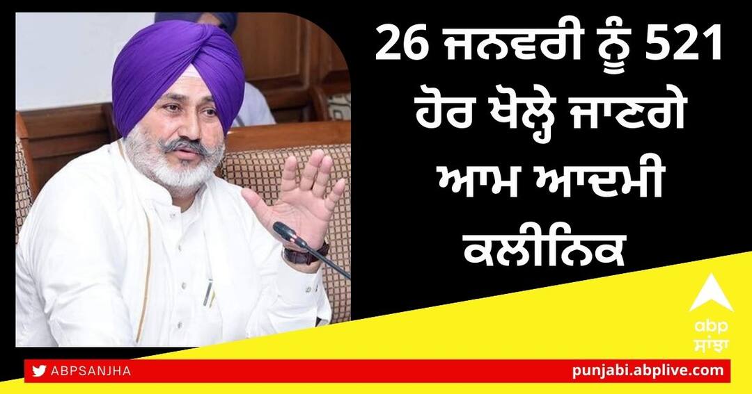 Punjab News: ਸਿਹਤ ਤੇ ਪਰਿਵਾਰ ਭਲਾਈ ਮੰਤਰੀ ਚੇਤਨ ਸਿੰਘ ਜੌੜਾਮਾਜਰਾ ਨੇ ਕਿਹਾ ਕਿ ਪੰਜਾਬ ਸਰਕਾਰ ਵੱਲੋਂ ਸੂਬੇ ਵਿੱਚ ਸਿਹਤ ਢਾਂਚੇ ਨੂੰ ਮਜ਼ਬੂਤ ਕਰਨ ਲਈ ਅਣਥੱਕ ਮਿਹਨਤ ਕੀਤੀ ਜਾ ਰਹੀ ਹੈ ਅਤੇ ਅਗਲੇ ਪੜਾਅ ਤਹਿਤ ਇਸ ਦਿਸ਼ਾ ਵਿੱਚ 26 ਜਨਵਰੀ, 2023 ਨੂੰ ਸੂਬੇ ਭਰ ਦੇ ਲੋਕਾਂ ਲਈ 521 ਨਵੇਂ ਆਮ ਆਮ ਆਦਮੀ ਕਲੀਨਿਕ ਖੋਲ੍ਹੇ ਜਾਣਗੇ।
