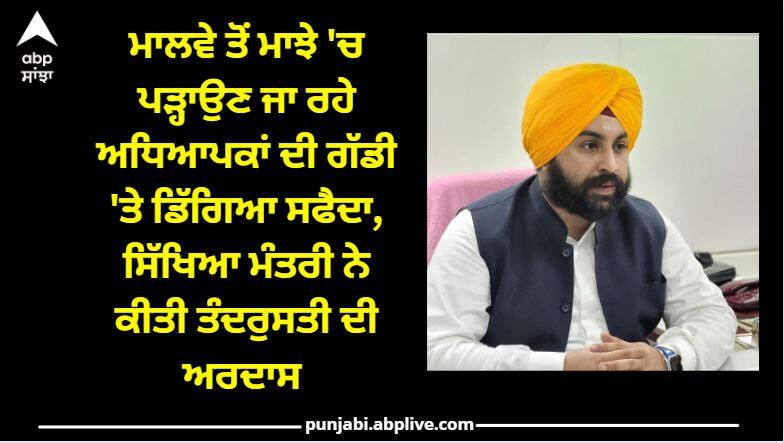 ਸਿੱਖਿਆ ਮੰਤਰੀ ਹਰਜੋਤ ਬੈਂਸ ਨੇ ਟਵੀਟ ਕਰਕੇ ਕਿਹਾ ਹੈ ਕਿ ਜਲਾਲਾਬਾਦ-ਫ਼ਿਰੋਜ਼ਪੁਰ ਰੋਡ ਤੇ ਪਿੰਡ ਖੱਜੀ ਪੀਰ ਨੇੜੇ ਸਕੂਲ ਡਿਊਟੀ ਜਾ ਰਹੇ 10 ਅਧਿਆਪਕਾਂ ਦੀ ਗੱਡੀ ਤੇ ਸਫ਼ੈਦਾ ਡਿੱਗਣ ਦੀ ਸੂਚਨਾ ਮਿਲੀ ਹੈ। ਪੰਜ ਅਧਿਆਪਕ ਫਰੀਦਕੋਟ-ਜਲਾਲਾਬਾਦ ਦੇ ਹਸਪਤਾਲਾਂ ਵਿੱਚ ਇਲਾਜ ਅਧੀਨ ਹਨ ਜਿਨ੍ਹਾਂ ਦੀ ਹਾਲਤ ਖਤਰੇ ਤੋ ਬਾਹਰ ਹੈ। ਬਾਕੀ ਸਾਰੇ ਠੀਕ ਹਨ। ਵਾਹਿਗੁਰੂ ਦੇ ਚਰਨਾਂ ਵਿੱਚ ਸਾਰਿਆਂ ਦੀ ਤੰਦਰੁਸਤੀ ਦੀ ਅਰਦਾਸ ਹੈ।