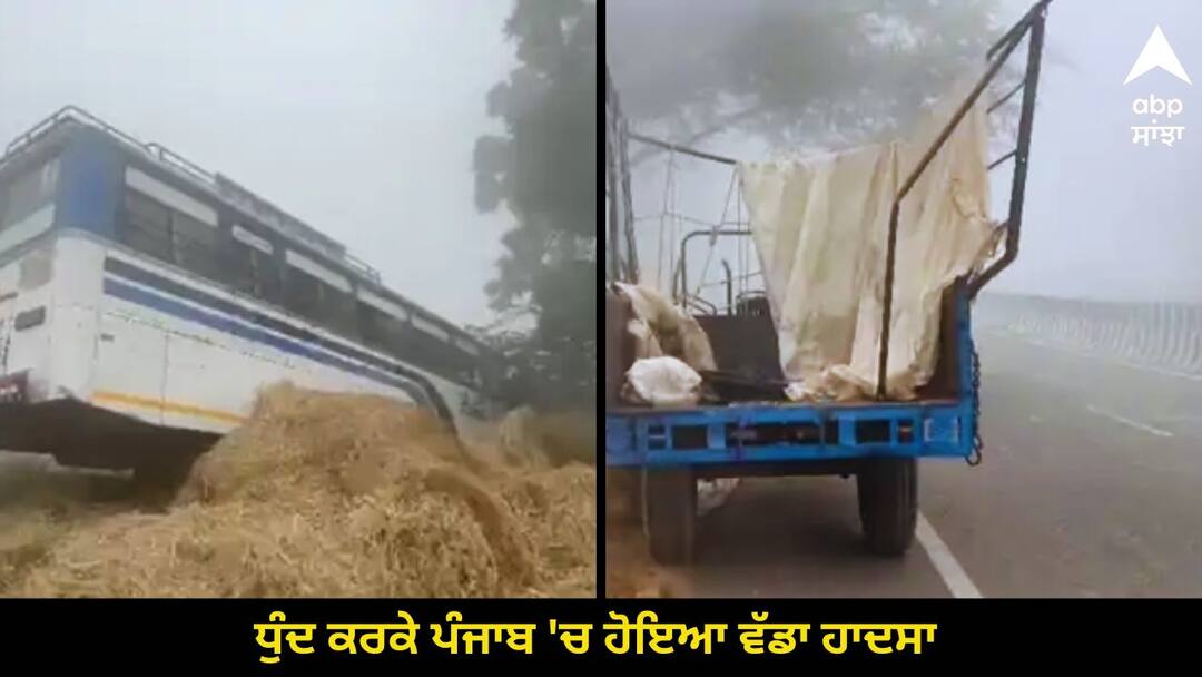 Punjab news: ਮਾਨਸਾ ਵਿੱਚ ਅੱਜ ਸਵੇਰੇ ਸੰਘਣੀ ਧੁੰਦ ਕਾਰਨ ਇੱਕ ਨਿੱਜੀ ਬੱਸ ਅਤੇ ਟਰੈਕਟਰ ਟਰਾਲੀ ਵਿਚਾਲੇ ਟੱਕਰ ਹੋ ਗਈ। ਇਸ ਹਾਦਸੇ 'ਚ ਟਰੈਕਟਰ ਟਰਾਲੀ 'ਚ ਸਵਾਰ ਇੱਕ ਵਿਅਕਤੀ ਦੀ ਮੌਤ ਹੋ ਗਈ, ਜਦਕਿ 5 ਲੋਕ ਗੰਭੀਰ ਜ਼ਖਮੀ ਹੋ ਗਏ। ਜ਼ਖ਼ਮੀਆਂ ਨੂੰ ਇਲਾਜ ਲਈ ਸਰਦੂਲਗੜ੍ਹ ਦੇ ਹਸਪਤਾਲ ਵਿੱਚ ਦਾਖ਼ਲ ਕਰਵਾਇਆ ਗਿਆ ਹੈ।