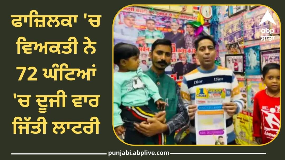 Punjab News: ਫਾਜ਼ਿਲਕਾ 'ਚ ਇੱਕ ਵਿਅਕਤੀ ਨੇ 72 ਘੰਟਿਆਂ 'ਚ ਦੂਜੀ ਵਾਰ 2.25 ਲੱਖ ਰੁਪਏ ਦੀ ਲਾਟਰੀ ਜਿੱਤੀ ਹੈ। ਹੁਣ ਨਾਗਾਲੈਂਡ ਸਟੇਟ ਲਾਟਰੀ ਦਾ ਨਤੀਜਾ ਆ ਗਿਆ ਹੈ ਜਿਸ 'ਚ 45 ਹਜ਼ਾਰ ਰੁਪਏ ਦਾ ਦੂਜਾ ਇਨਾਮ ਦਿੱਤਾ ਗਿਆ ਹੈ, ਜਿਸ 'ਚ ਉਨ੍ਹਾਂ ਕਿਹਾ ਕਿ ਹੁਣ ਉਹ ਆਪਣਾ ਘਰ ਖਰੀਦੇਗਾ।