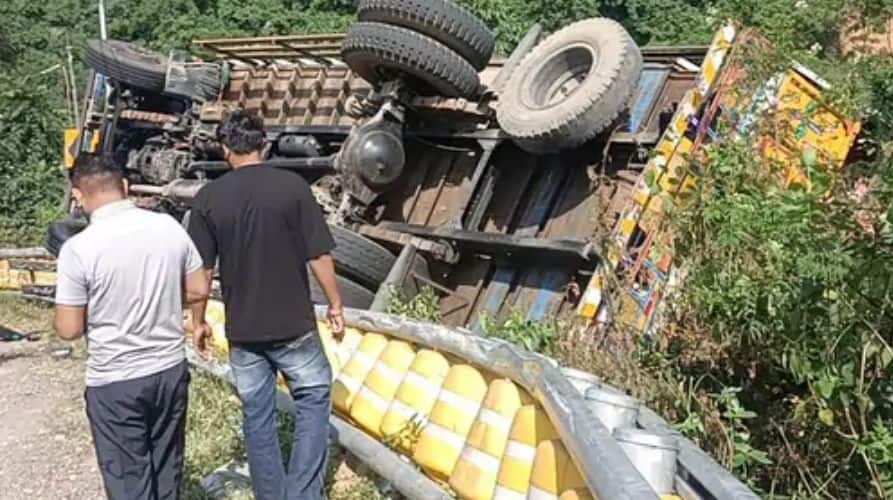 ਕੁਝ ਸ਼ਰਧਾਲੂ ਡਰ ਦੇ ਮਾਰੇ ਚੱਲਦੇ ਟਰੱਕ ਵਿੱਚੋਂ ਛਾਲ ਮਾਰ ਗਏ। ਥੋੜ੍ਹੀ ਦੂਰੀ 'ਤੇ, ਰਾਧਾ ਸਵਾਮੀ ਸਤਿਸੰਗ ਭਵਨ ਧਾਲਿਆਰਾ ਦੇ ਨੇੜੇ, ਟਰੱਕ ਅਚਾਨਕ ਕੰਟਰੋਲ ਗੁਆ ਬੈਠਾ, ਪਲਟ ਗਿਆ ਅਤੇ ਖੱਡ ਵਿੱਚ ਡਿੱਗ ਗਿਆ।