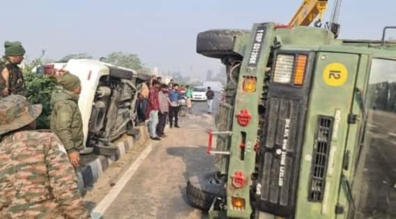 Punjab News: ਜਲੰਧਰ ਵਿੱਚ ਜਲੰਧਰ-ਪਠਾਨਕੋਟ ਰਾਸ਼ਟਰੀ ਰਾਜਮਾਰਗ 'ਤੇ ਇੱਕ ਵੱਡਾ ਸੜਕ ਹਾਦਸਾ ਵਾਪਰਿਆ। ਪਠਾਨਕੋਟ ਚੌਕ ਨੇੜੇ ਇੱਕ ਫੌਜ ਦੇ ਟਰੱਕ ਅਤੇ ਇੱਕ ਕਾਰ ਦੀ ਭਿਆਨਕ ਟੱਕਰ ਹੋ ਗਈ। ਟਰੱਕ ਨੇ ਕੰਟਰੋਲ ਗੁਆ ਦਿੱਤਾ ਅਤੇ ਸੜਕ ਦੇ ਵਿਚਕਾਰ ਪਲਟ ਗਿਆ, ਜਦੋਂ ਕਿ ਕਾਰ ਵੀ ਡਿਵਾਈਡਰ 'ਤੇ ਪਲਟ ਗਈ। ਕਾਰ ਵਿੱਚ ਸਵਾਰ ਨੂੰ ਮਾਮੂਲੀ ਸੱਟਾਂ ਲੱਗੀਆਂ, ਜਦੋਂ ਕਿ ਸਾਰੇ ਫੌਜ ਦੇ ਜਵਾਨ ਸੁਰੱਖਿਅਤ ਦੱਸੇ ਜਾ ਰਹੇ ਹਨ।