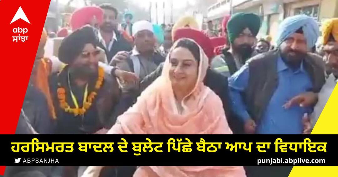 Punjab News: ਬਠਿੰਡਾ ਵਿੱਚ ਵਿਰਾਸਤੀ ਮੇਲੇ ਵਿੱਚ ਪਹੁੰਚੀ ਸਾਬਕਾ ਕੇਂਦਰੀ ਮੰਤਰੀ ਹਰਸਿਮਰਤ ਕੌਰ ਬਾਦਲ ਬੁਲੇਟ ਮੋਟਰਸਾਈਕਲ ਦੀ ਸਵਾਰੀ ਕਰਦੀ ਨਜ਼ਰ ਆਈ। ਇਸ ਮੌਕੇ ਬਠਿੰਡਾ ਤੋਂ ਵਿਧਾਇਕ ਜਗਰੂਪ ਸਿੰਘ ਗਿੱਲ ਹਰਸਿਮਰਤ ਦੇ ਪਿੱਛੇ ਬੈਠੇ ਨਜ਼ਰ ਆ ਰਹੇ ਹਨ। ਹਰਸਿਮਰਤ ਬਾਦਲ ਨੇ ਮਜ਼ਾਕ ਵਿੱਚ ਪੁੱਛਿਆ ਕਿ ਕੀ ਅਸੀਂ ਤੁਹਾਨੂੰ ਇੱਥੋਂ ਭਜਾ ਕੇ ਲੈ ਜਾਈਏ?