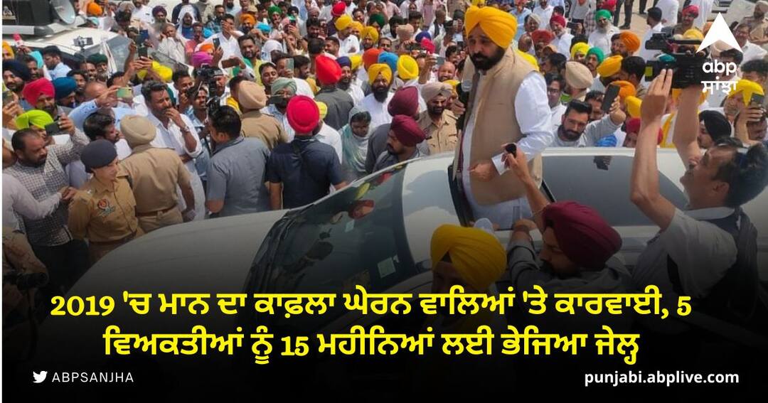 Punjab News: 2019 ਦੀਆਂ ਲੋਕ ਸਭਾ ਚੋਣਾਂ ਵਿੱਚ ਤਤਕਾਲੀ ਸੰਸਦ ਮੈਂਬਰ ਭਗਵੰਤ ਮਾਨ ਦੇ ਕਾਫ਼ਲੇ ਦਾ ਘਿਰਾਓ ਕਰਨ ਦੇ ਦੋਸ਼ ਹੇਠ ਪੰਜ ਵਿਅਕਤੀਆਂ ਨੂੰ ਦੋ ਧਾਰਾਵਾਂ ਤਹਿਤ ਇੱਕ-ਇੱਕ ਸਾਲ ਅਤੇ ਤਿੰਨ ਮਹੀਨੇ ਦੀ ਸਜ਼ਾ ਸੁਣਾਈ ਗਈ ਹੈ। ਇਸ ਦੇ ਨਾਲ ਹੀ ਪੰਜ ਹਜ਼ਾਰ ਰੁਪਏ ਜੁਰਮਾਨਾ ਭਰਨ ਦੇ ਹੁਕਮ ਵੀ ਦਿੱਤੇ ਹਨ।